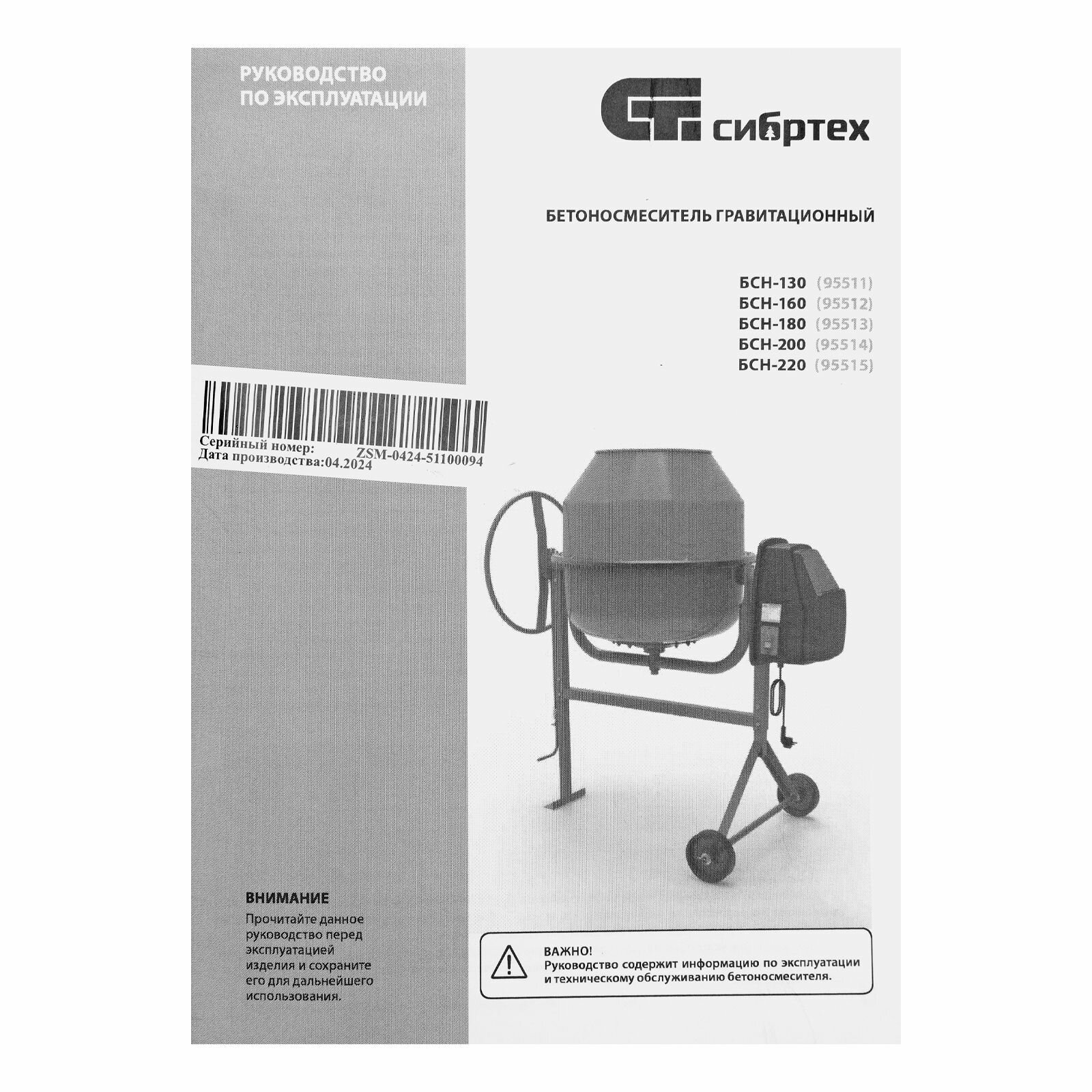 Купить Бетоносмеситель Сибртех БСН-200, мощность 800 Вт 95514
