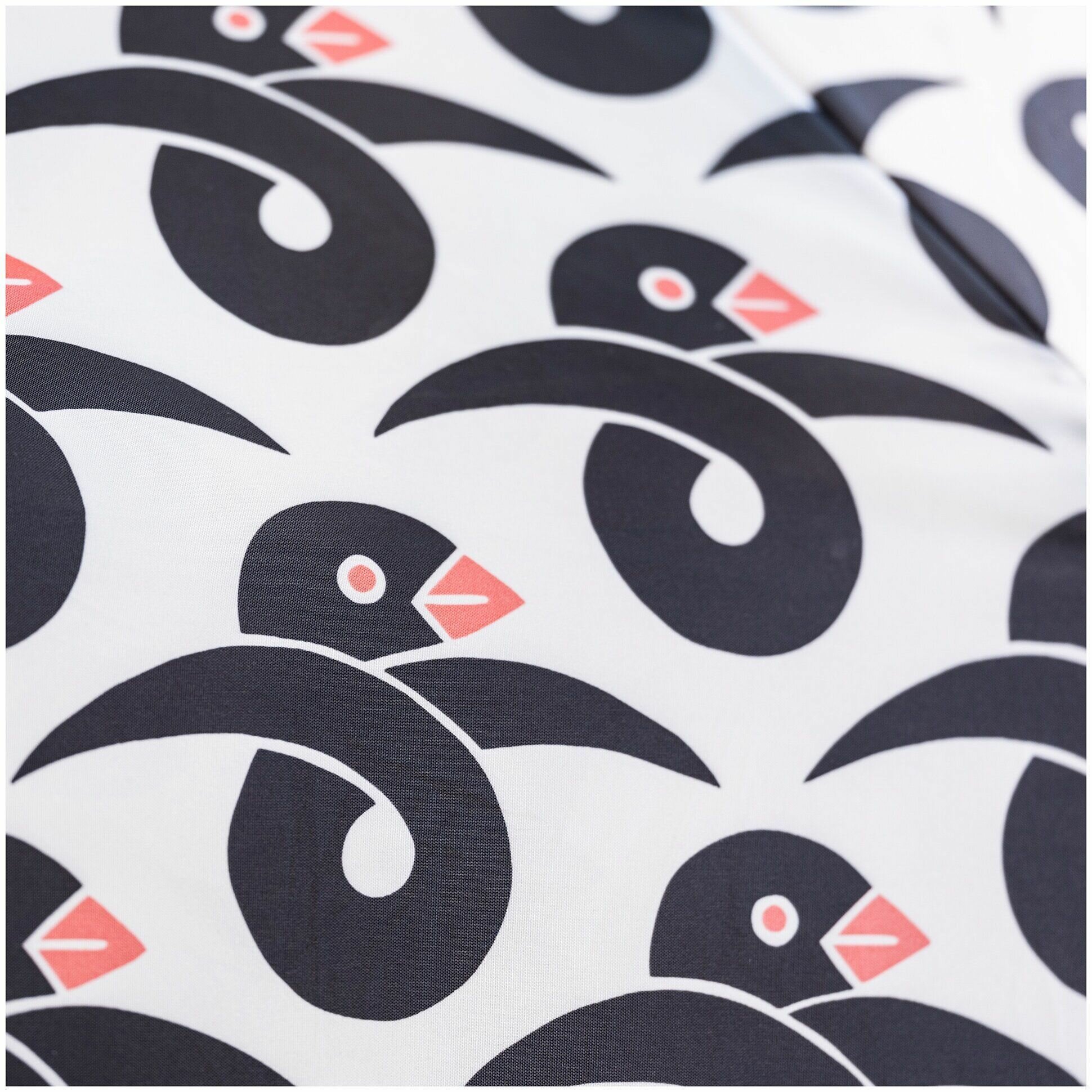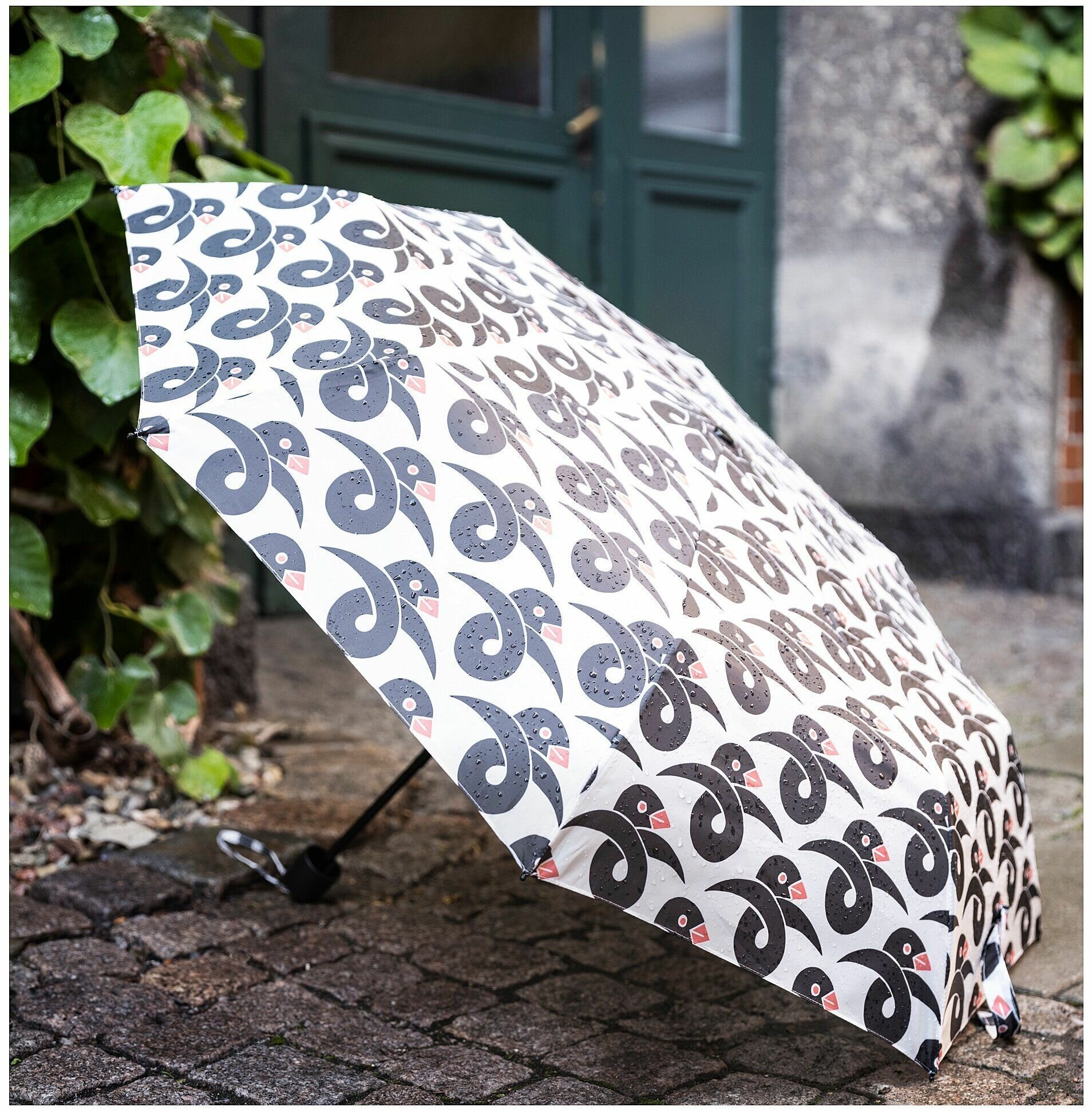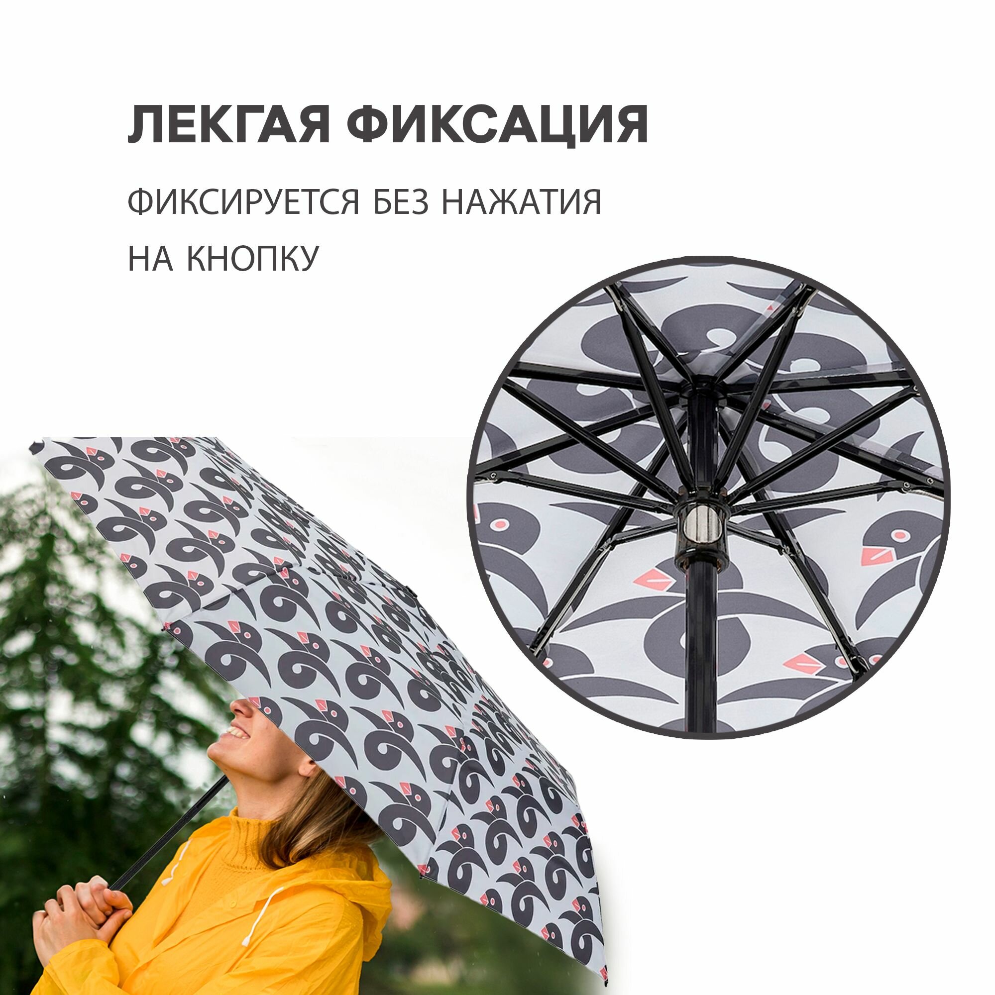 Зонт складной KNALLA механика, 3 сложения, купол 95 см., чехол в комплекте, орнамент птица/белый интересное:
