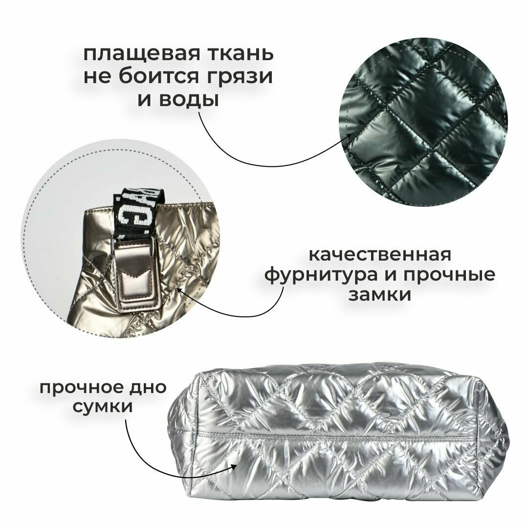 Сумка женская через плечо / Сумка кросс-боди / Зимняя сумка / Шоппер / Сумка на плечо / сумка большая стеганая дутая серый металлик