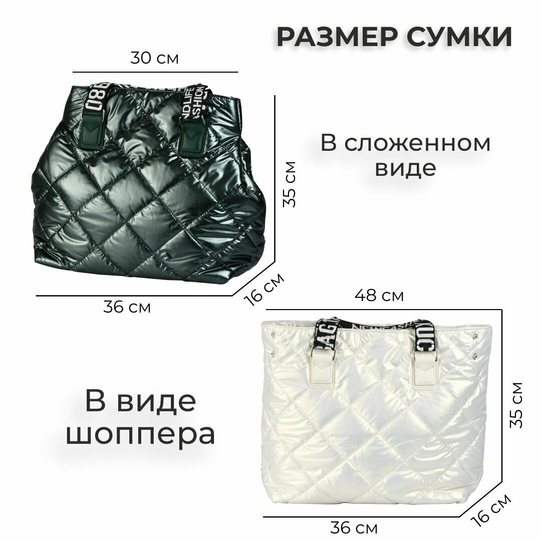 Сумка женская через плечо / Сумка кросс-боди / Зимняя сумка / Шоппер / Сумка на плечо / сумка большая стеганая дутая зеленый