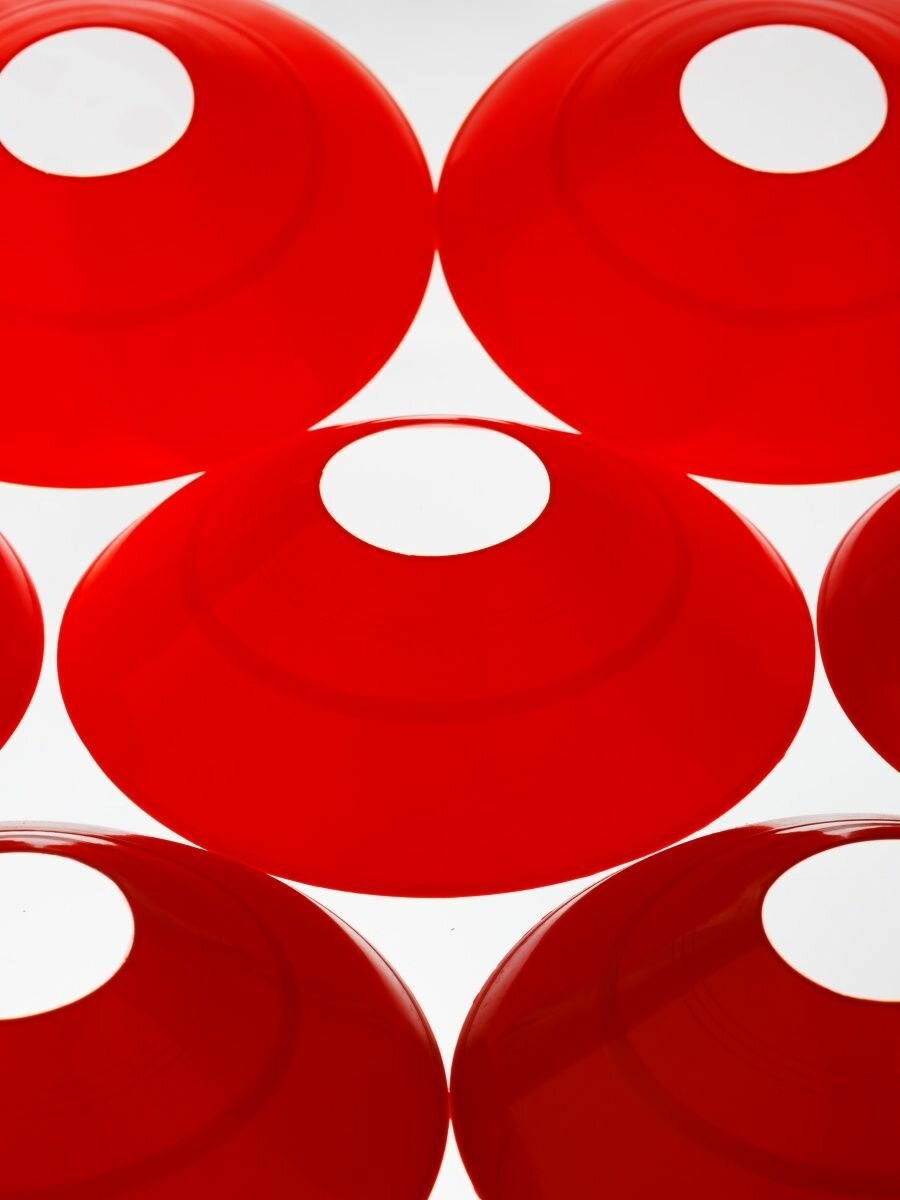 Купить Конусы фишки спортивные Estafit 10 штук высота 5 см, диаметр 19 см, фишки для футбола, красные