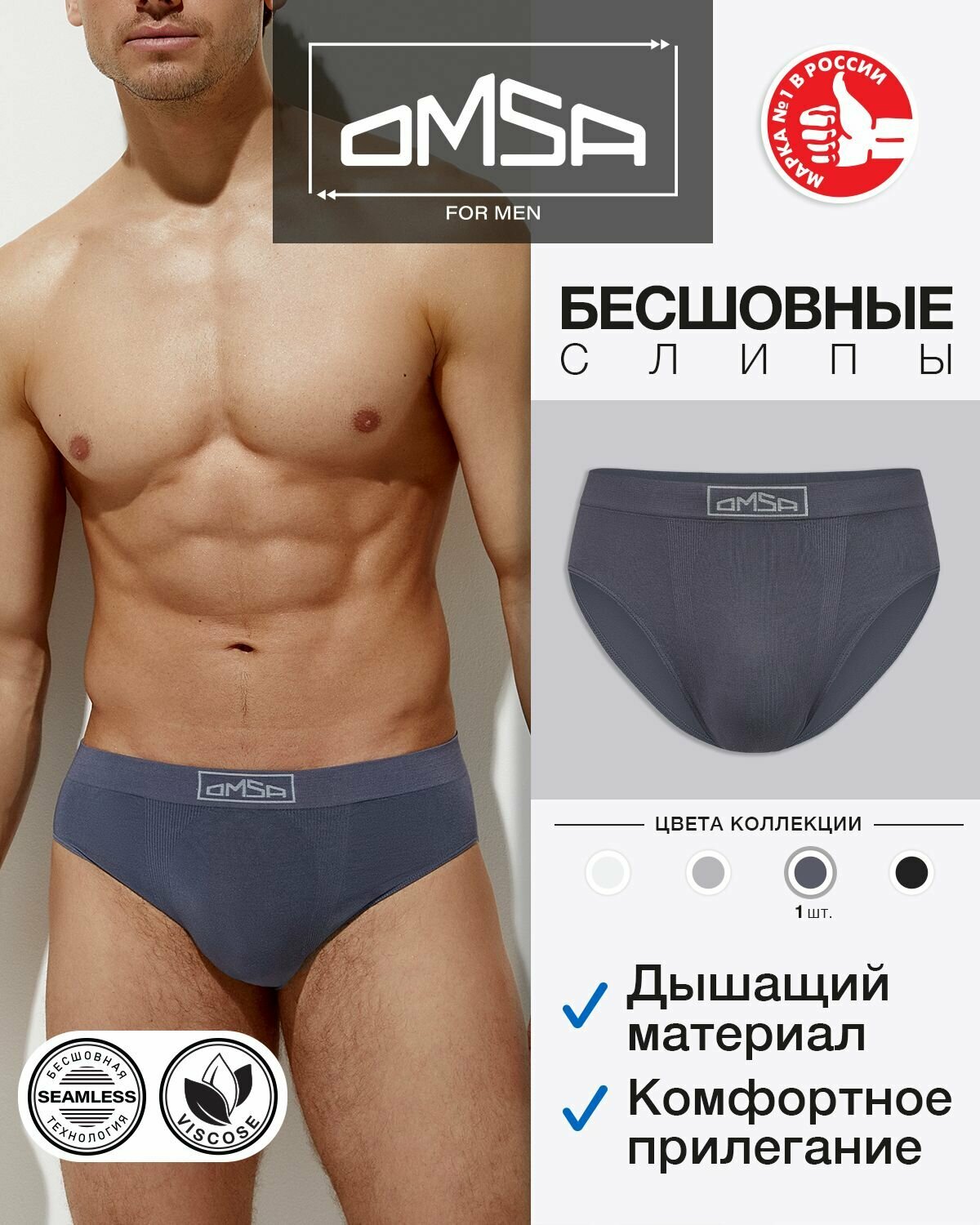Купить Трусы мужские бесшовные из вискозы OMSA for MEN Seamless VISCOSE Slip, размер 54=3XL, цвет Grafite=Темно-серый