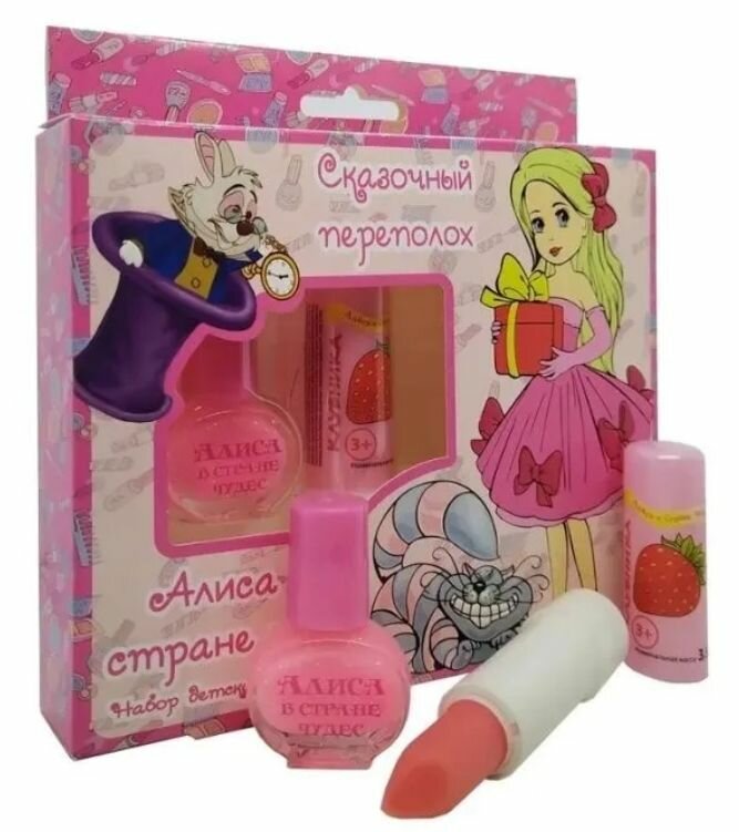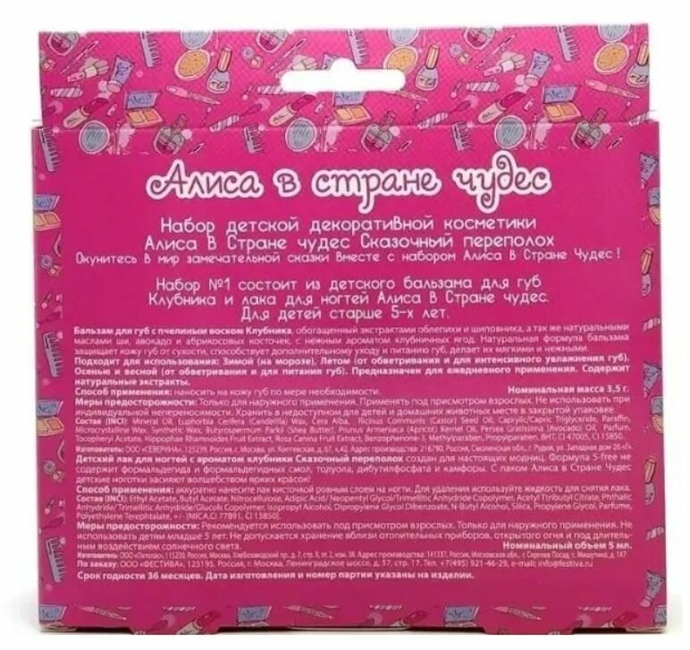 Купить Festiva Детский подарочный набор Алиса в стране чудес, Сказочный переполох: Бальзам для губ Клубника, 3.5 г + Лак для ногтей, 5 мл