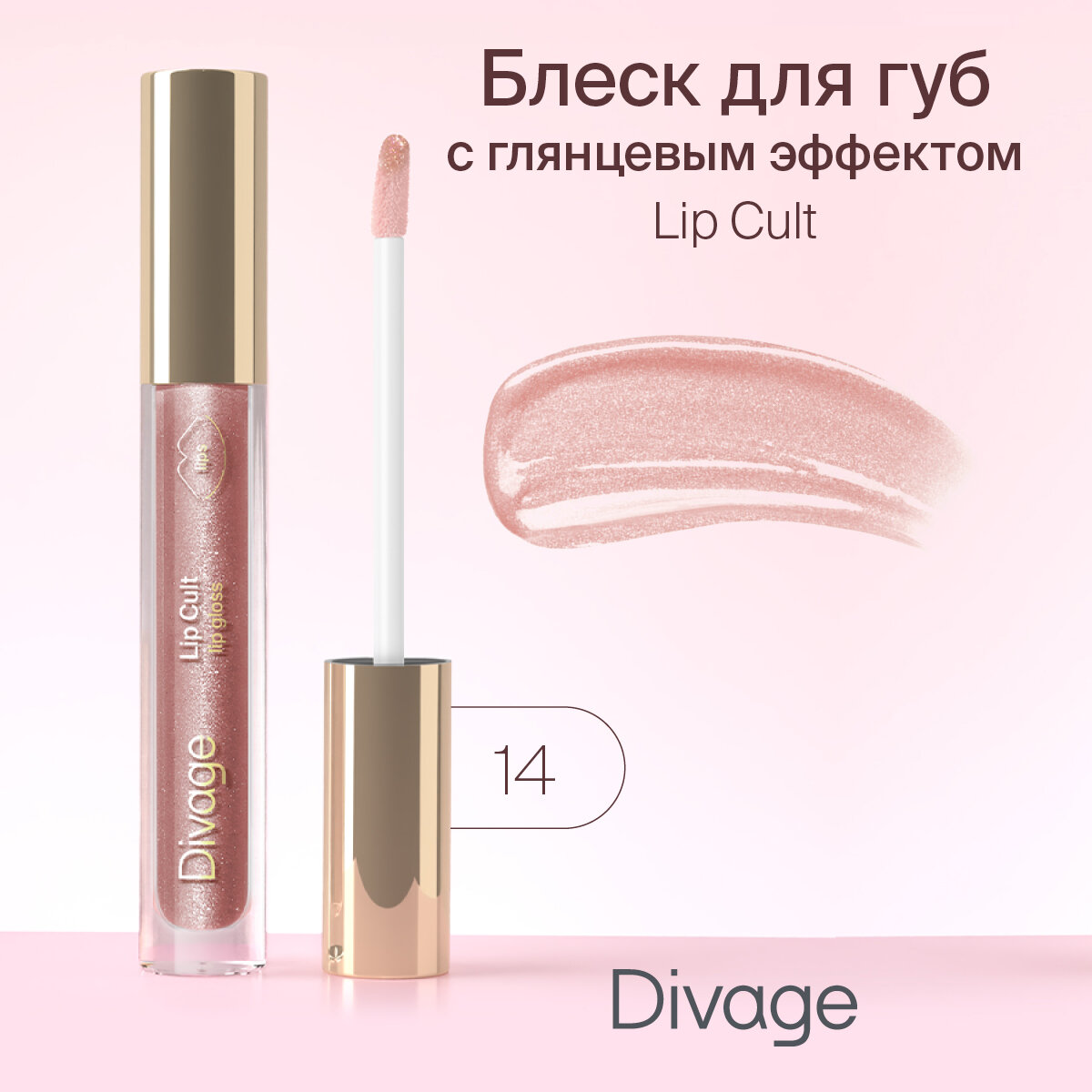Блеск для губ Divage Lip Cult 14 розово-бежевый сияющий, 3мл