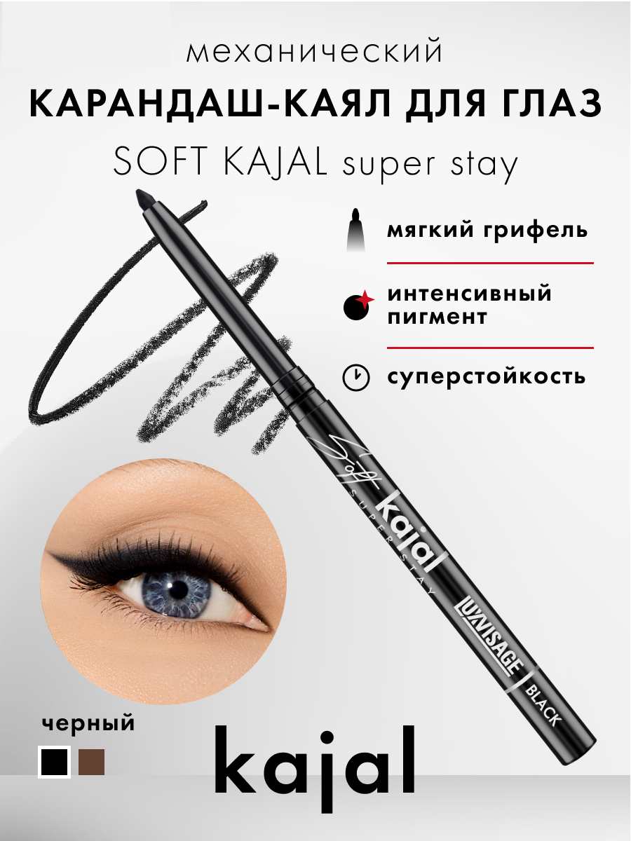 Карандаш механический для глаз каял SOFT KAJAL SUPER STAY LUXVISAGE Black