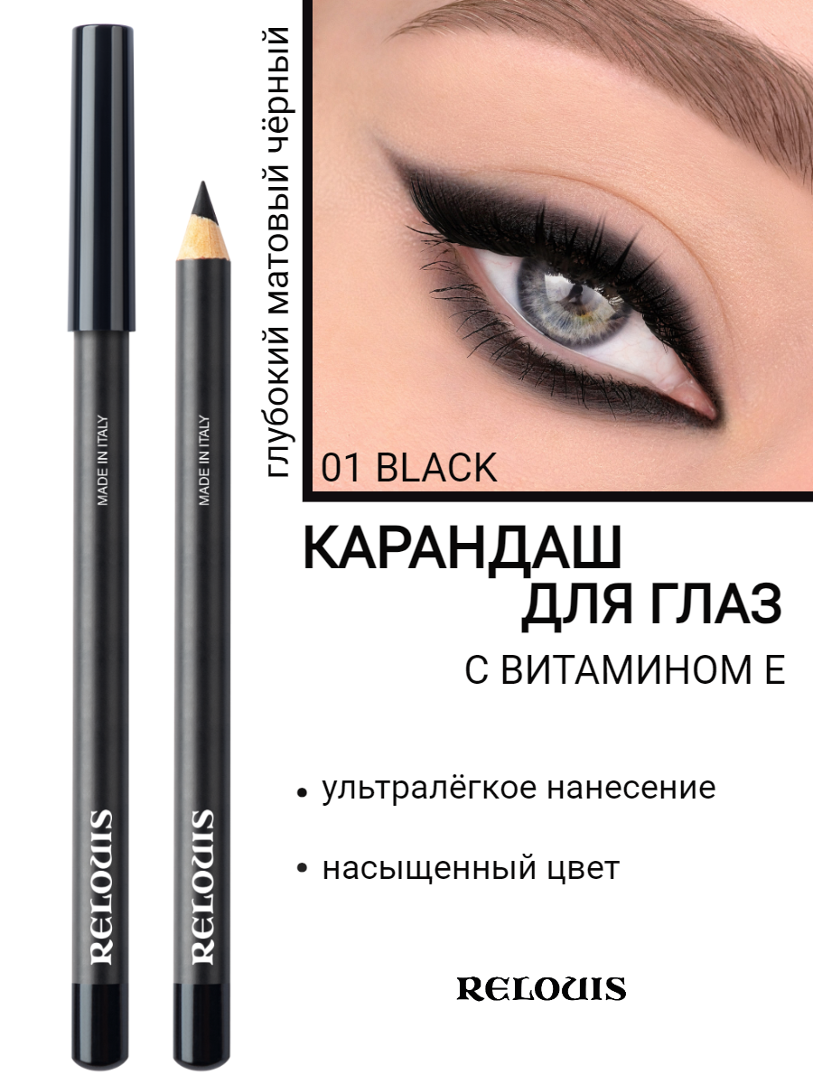 Relouis Контурный карандаш для глаз с витамином E, оттенок 01 черный