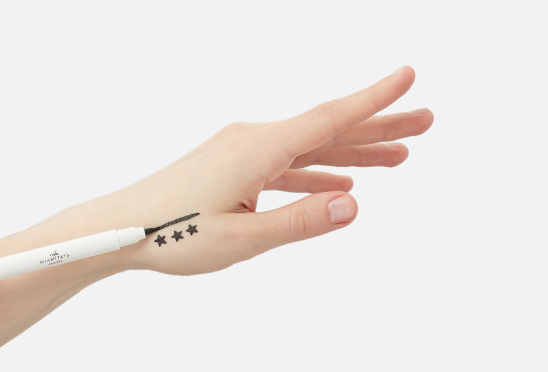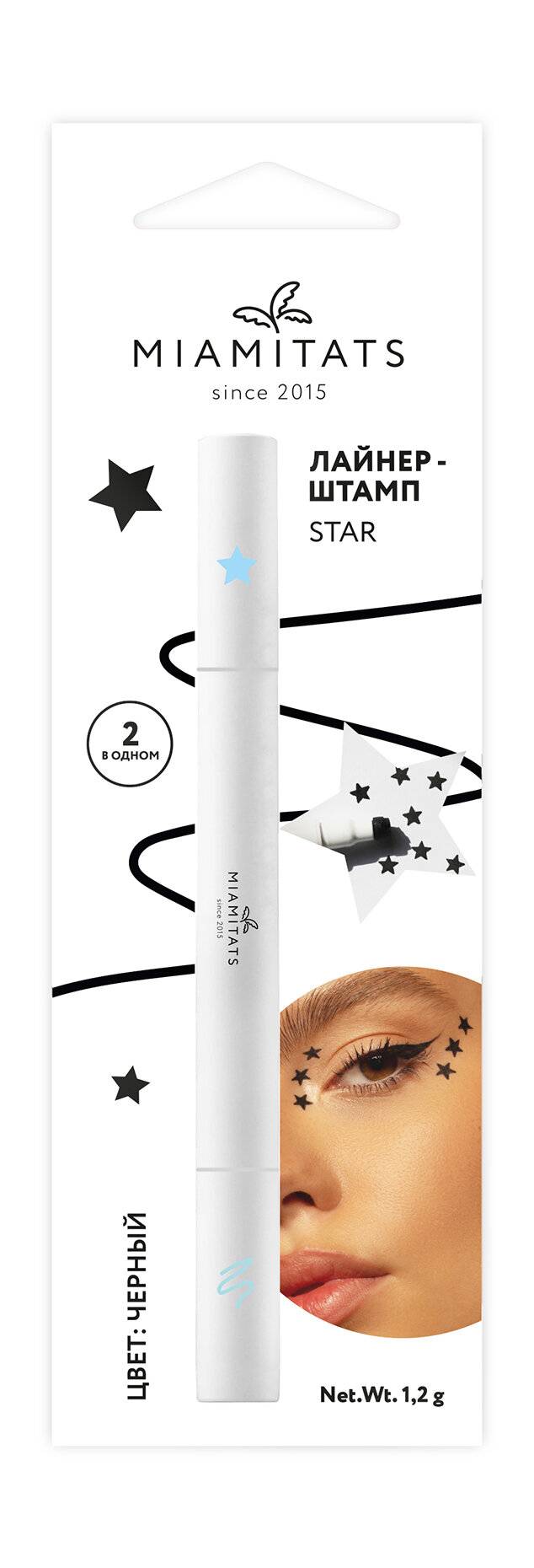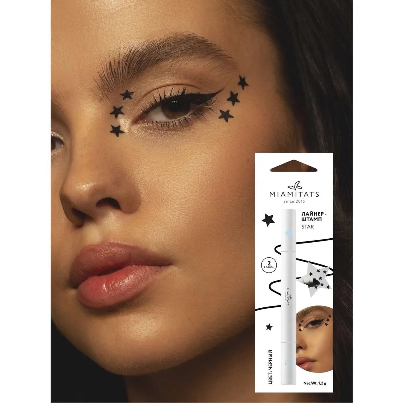MIAMITATS Лайнер + тату-штамп (2в1) Star, подводка фломастер для глаз + тату-штамп звездочка, черная