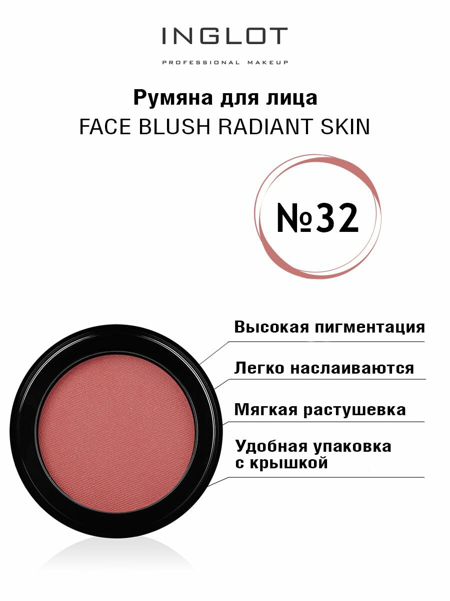 Румяна INGLOT эффект свежего, ухоженного лица Radiant Skin Face Blush №32