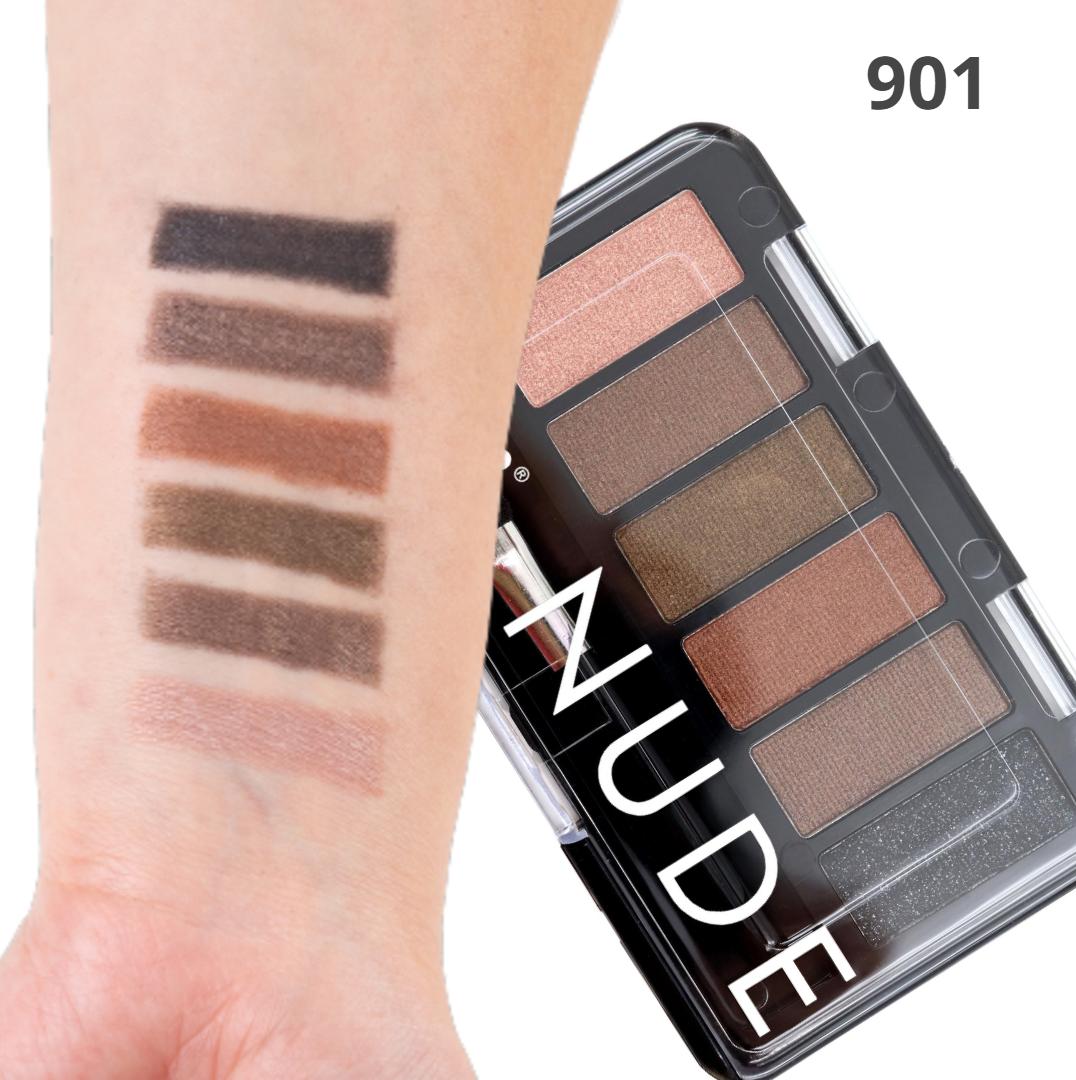 Тени для век Kiki 6-ти цветные, NUDE, 901 какао, шоколад, серый хаки, бронза, золотисто-коричневый, асфальт