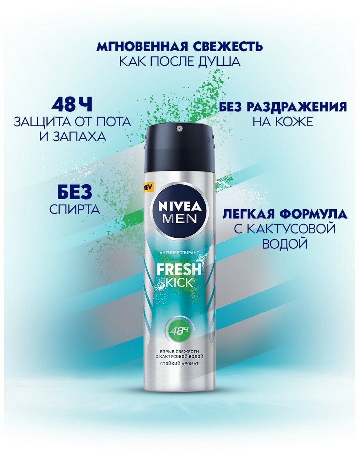Nivea Men Дезодорант-антиперспирант спрей Fresh Kick муж, 150 мл - 3 шт