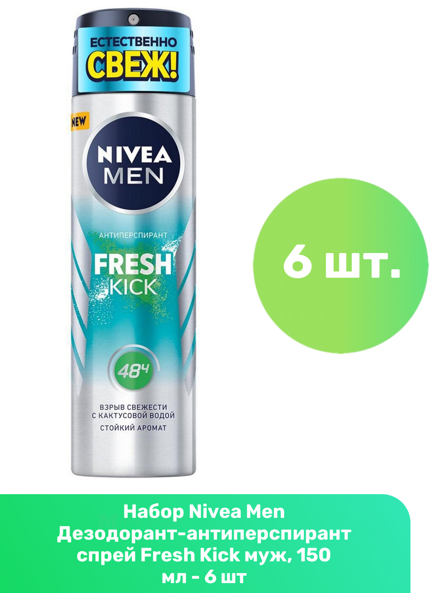 Купить Nivea Men Дезодорант-антиперспирант спрей Fresh Kick муж, 150 мл - 6 шт