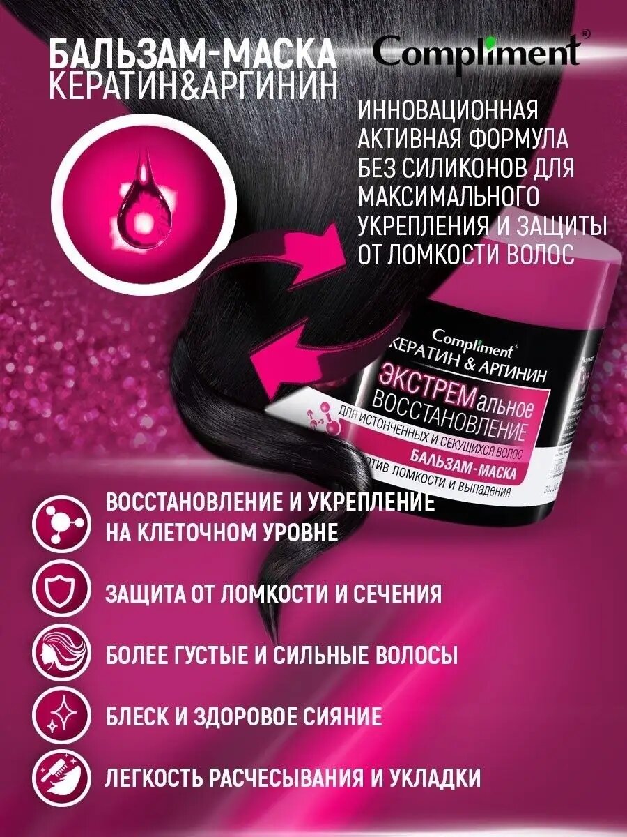 Купить Compliment Бальзам-маска кератин и аргинин Экстремальное восстановление для истонченных и секущихся волос 300 мл