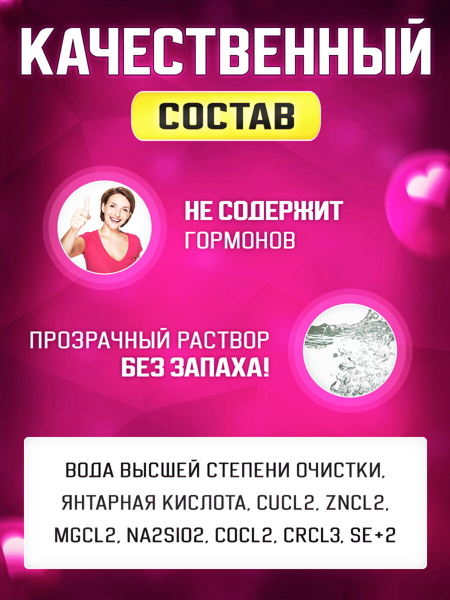 | Состав | Янтарная кислота - активирует иммунитет, улучшает энергетический обмен; Медь и Цинк - контролируют процессы роста и выпадения волос (медь входит в состав фермента, который отвечает за выработку коллагена и эластина); Магний - улучшает процессы регенерации; Кобальт - входит в группу витаминов В12; Хром - его нехватка сказывается на ломкости волос; Селен - один из важнейших элементов для роста волос. |