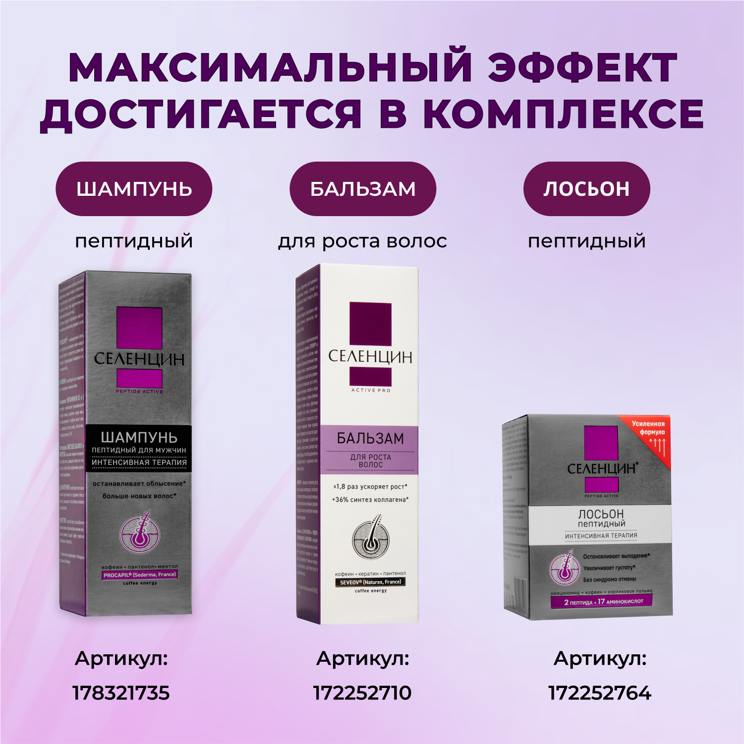 | Эффект | активация роста / восстановление / придание объема / против выпадения / укрепление / уплотнение волос |