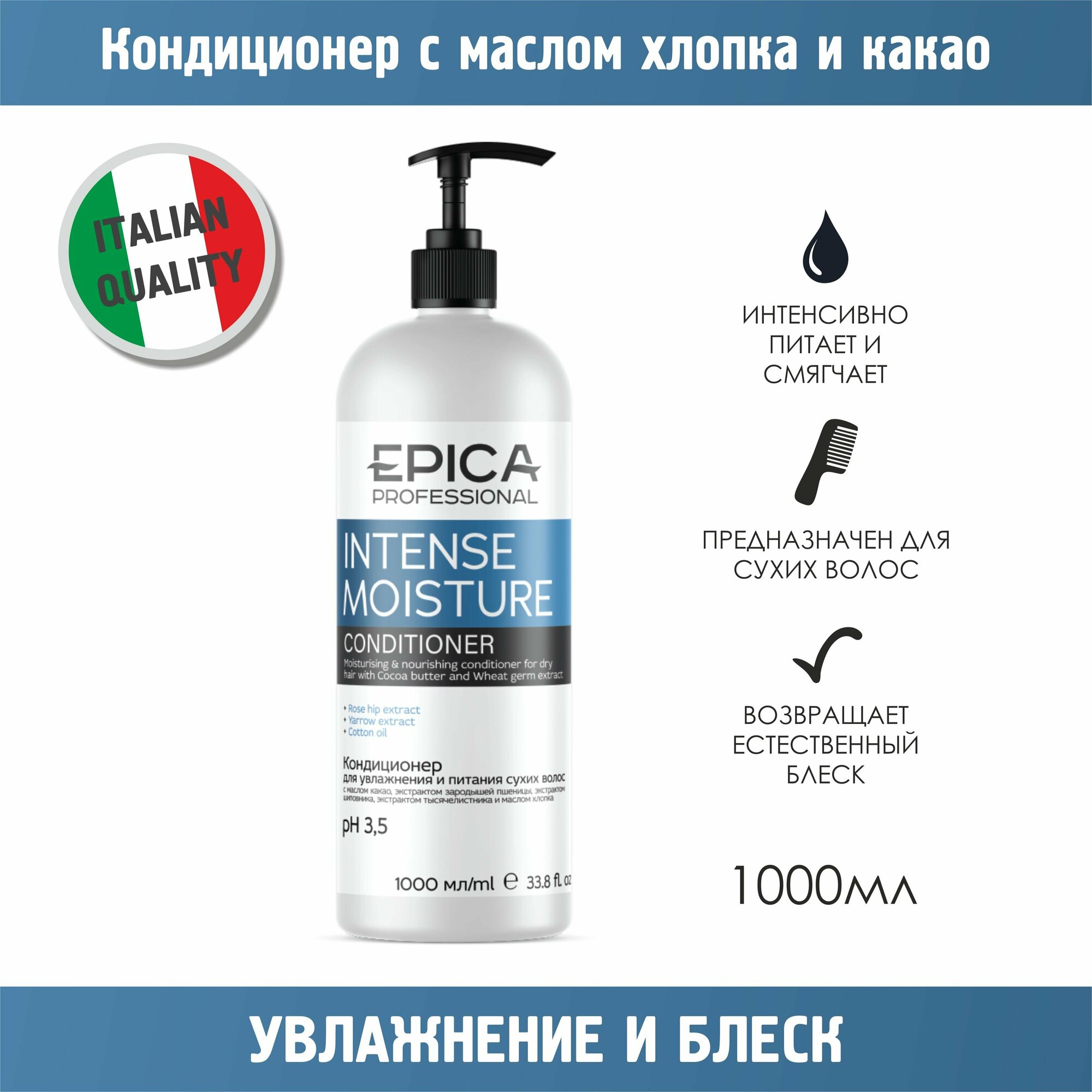 EPICA PROFESSIONAL Intense Moisture Увлажняющий кондиционер для сухих волос, 1000 мл