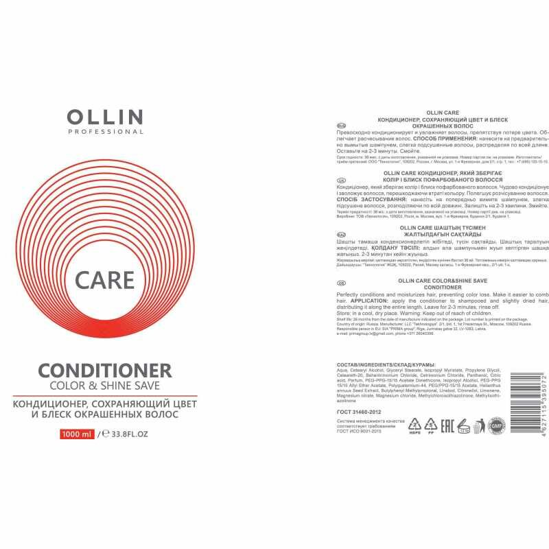 Ollin, Кондиционер, сохраняющий цвет и блеск окрашенных волос Care, 1000 мл