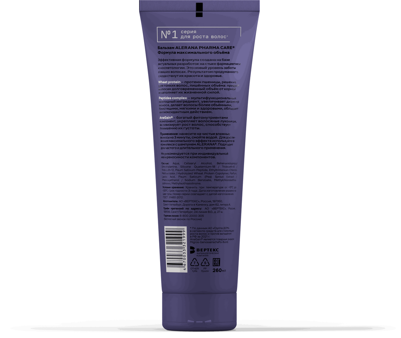 Алерана PHARMA CARE бальзам туба 260МЛ формула максимального объема