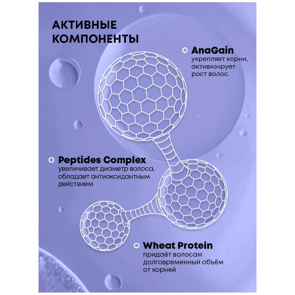 | Активный ингредиент | аминокислоты / кератин / лимонная кислота / молочная кислота / пептиды / протеины / протеины пшеницы / хитозан |