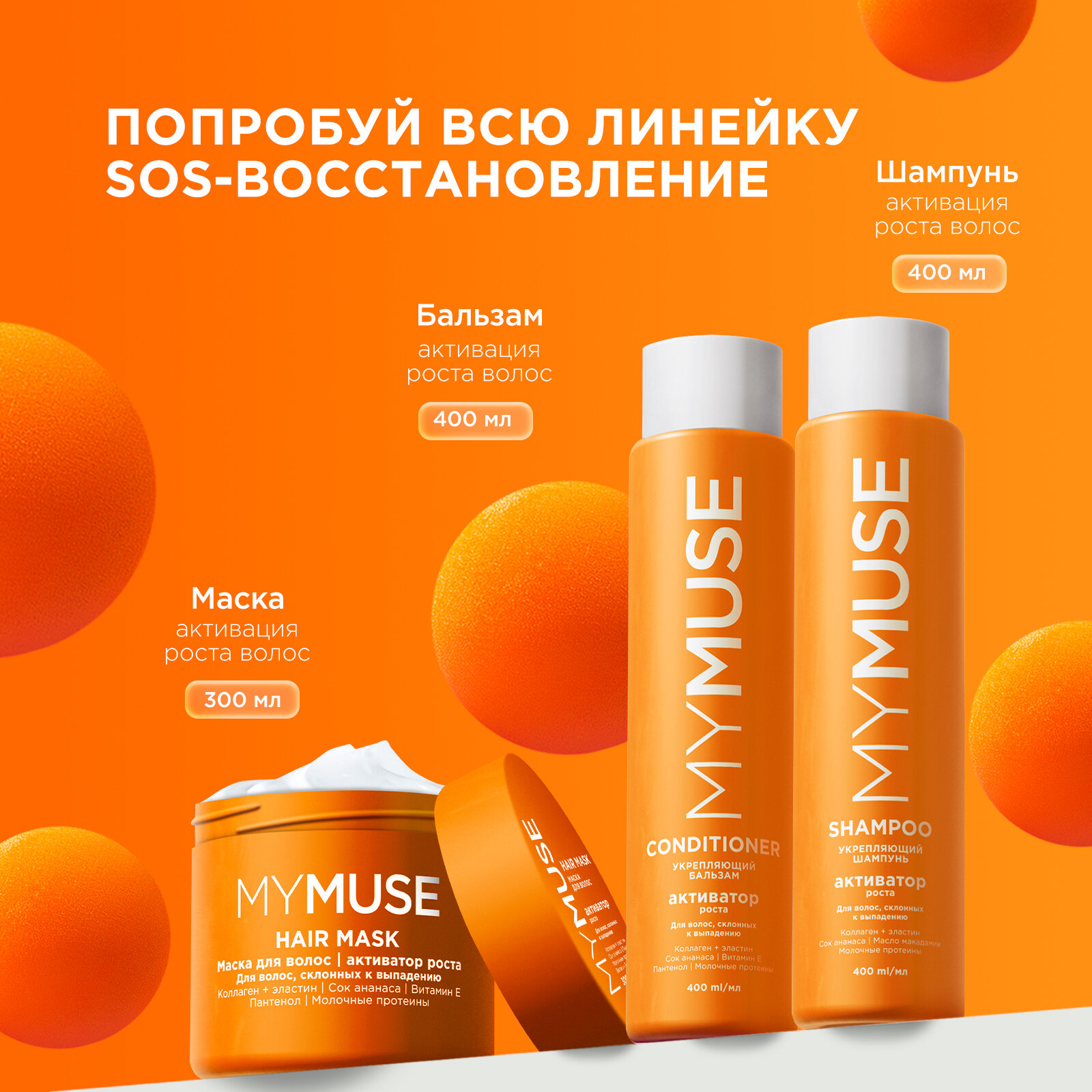 Купить MYMUSE Укрепляющий бальзам активатор роста 400 мл