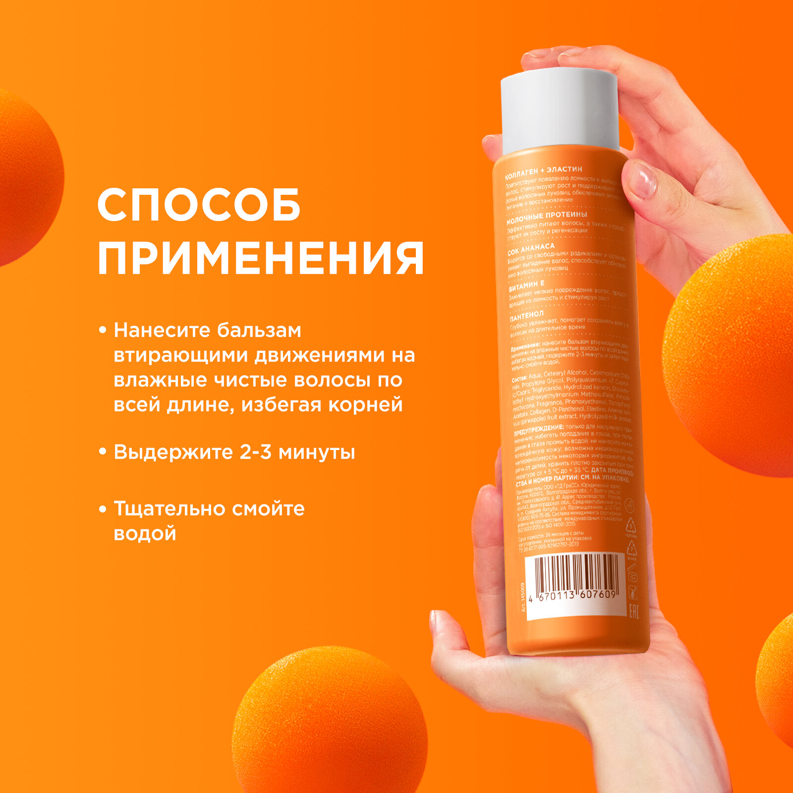 | Способ применения | Способ применения бальзама Использовать после шампуня. Нанесите массирующими движениями на влажные волосы по всей длине на 2-3 минуты и тщательно смойте. Рекомендуем использовать с шампунем этой серии. |