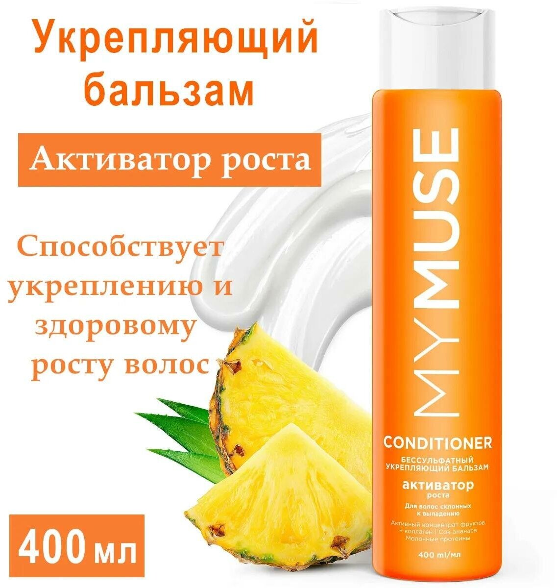 Бальзам для волос укрепляющий MyMuse Активатор роста, бессульфатный, 400 мл