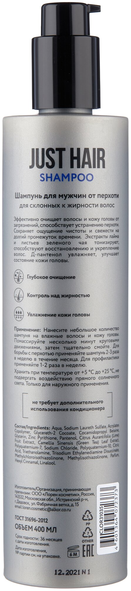JUST HAIR Шампунь для мужчин от перхоти 400 мл