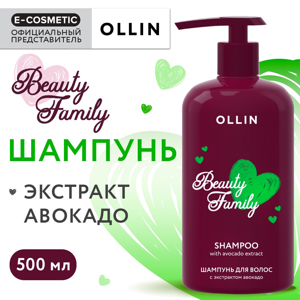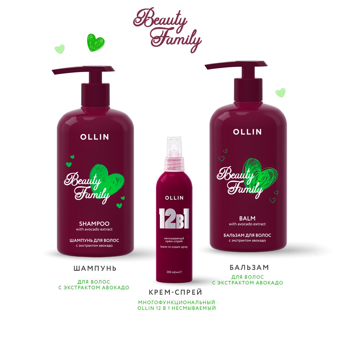 OLLIN BEAUTY FAMILY Шампунь для волос с экстрактом авокадо 500мл