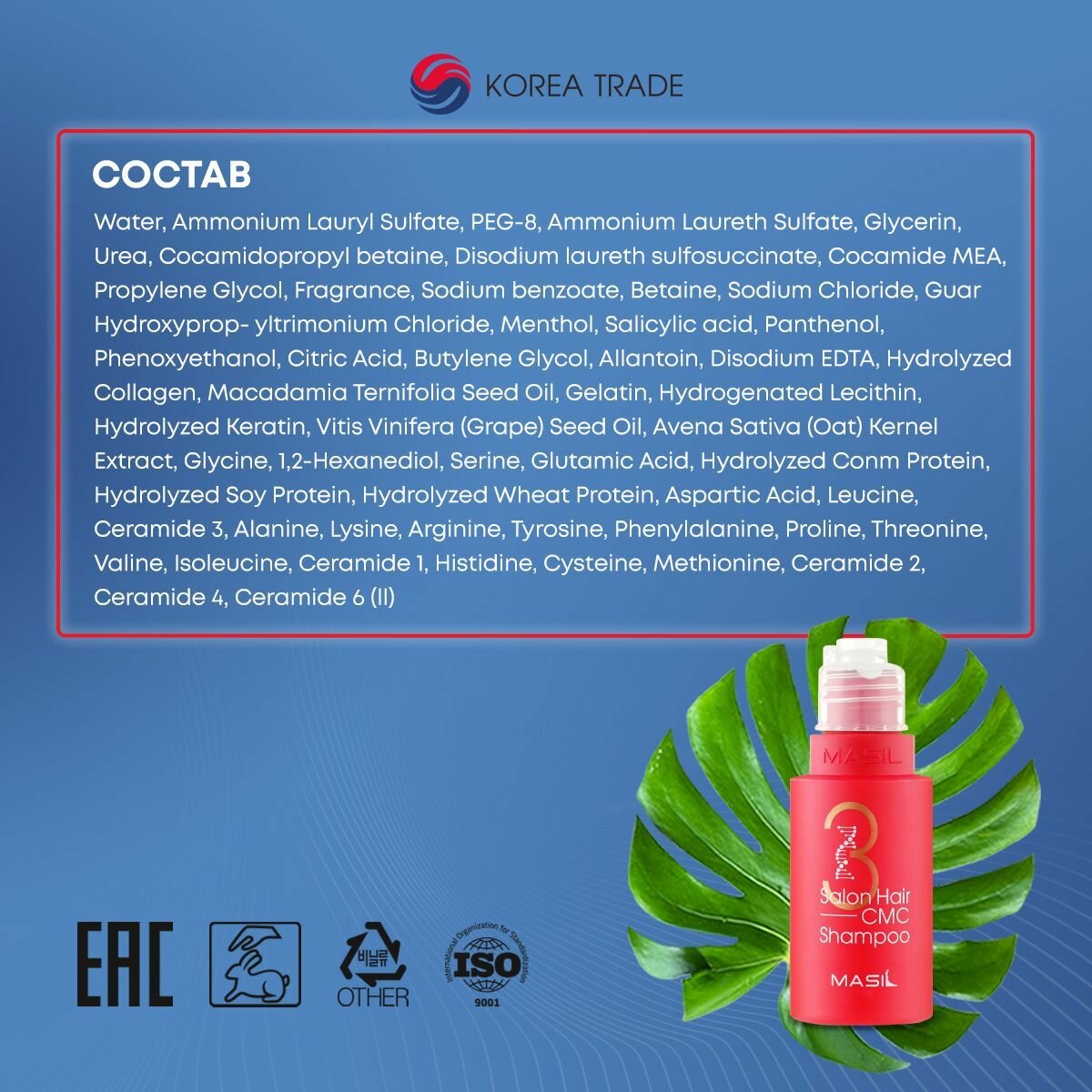 Masil Шампунь для волос с аминокислотами Masil 3 Salon Hair Cmc Shampoo, 300 мл