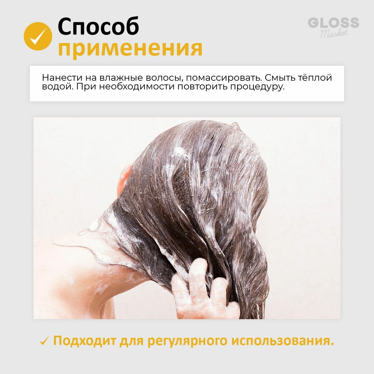 | Способ применения | нанесите на влажные волосы, помассируйте. Смойте водой. При необходимости – повторите процедуру |