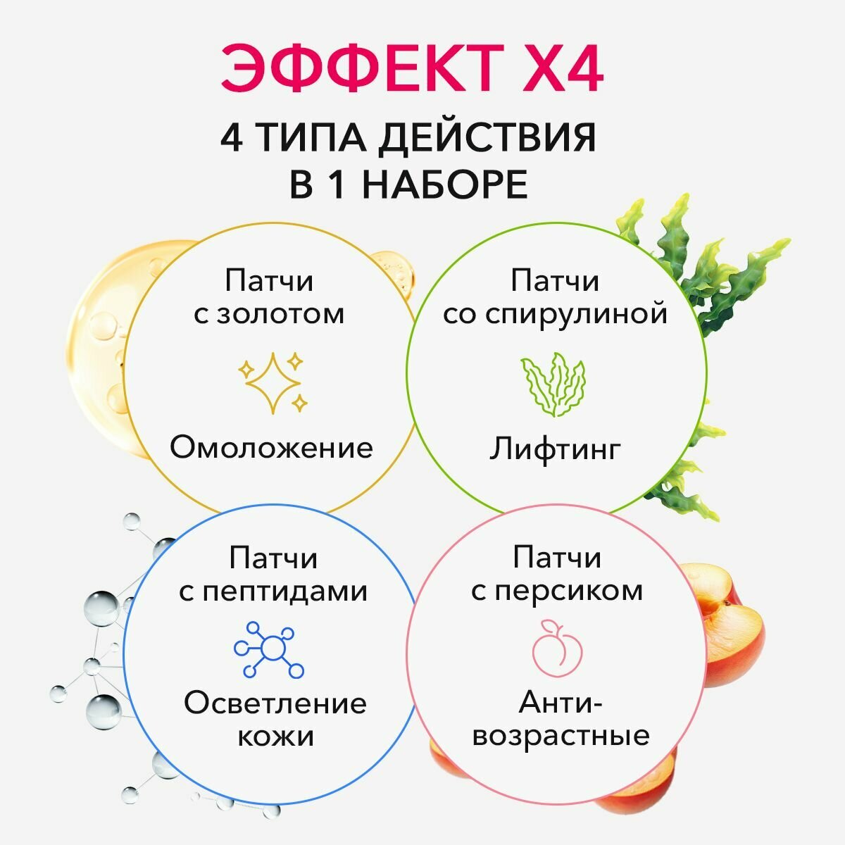 Bioaqua / Гидрогелевые патчи для глаз / Набор 6 видов по 60 шт. / Водоросли / Жемчуг / Пептид / Персик / Спирулина / Золото