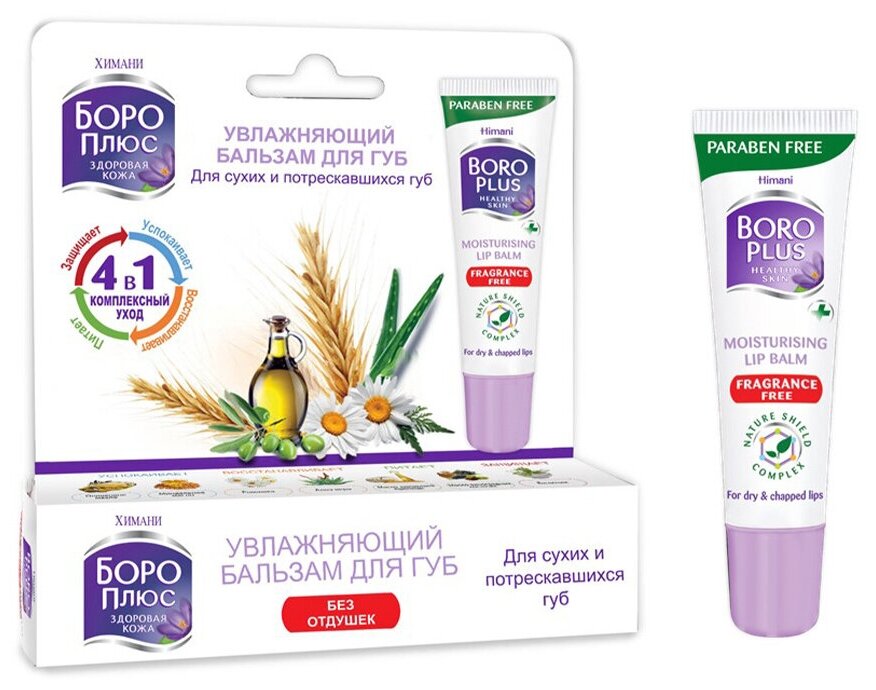 Бальзам для губ увлажняющий без отдушек Здоровая кожа Боро Плюс 10мл