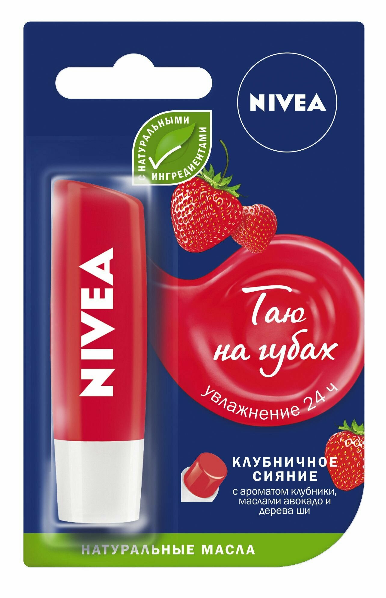 Бальзам для губ Nivea "Клубничное сияние" маслами авокадо и дерева ши, 4,8 гр.