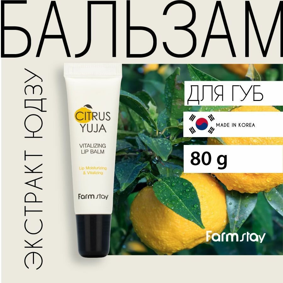 FarmStay Бальзам для губ увлажняющий с юдзу, церамидами и скваланом. Корея. Бесцветный питательный бальзам для губ корейский. 10г интересное: