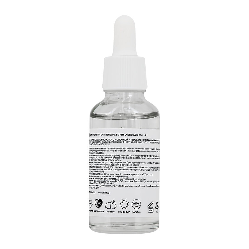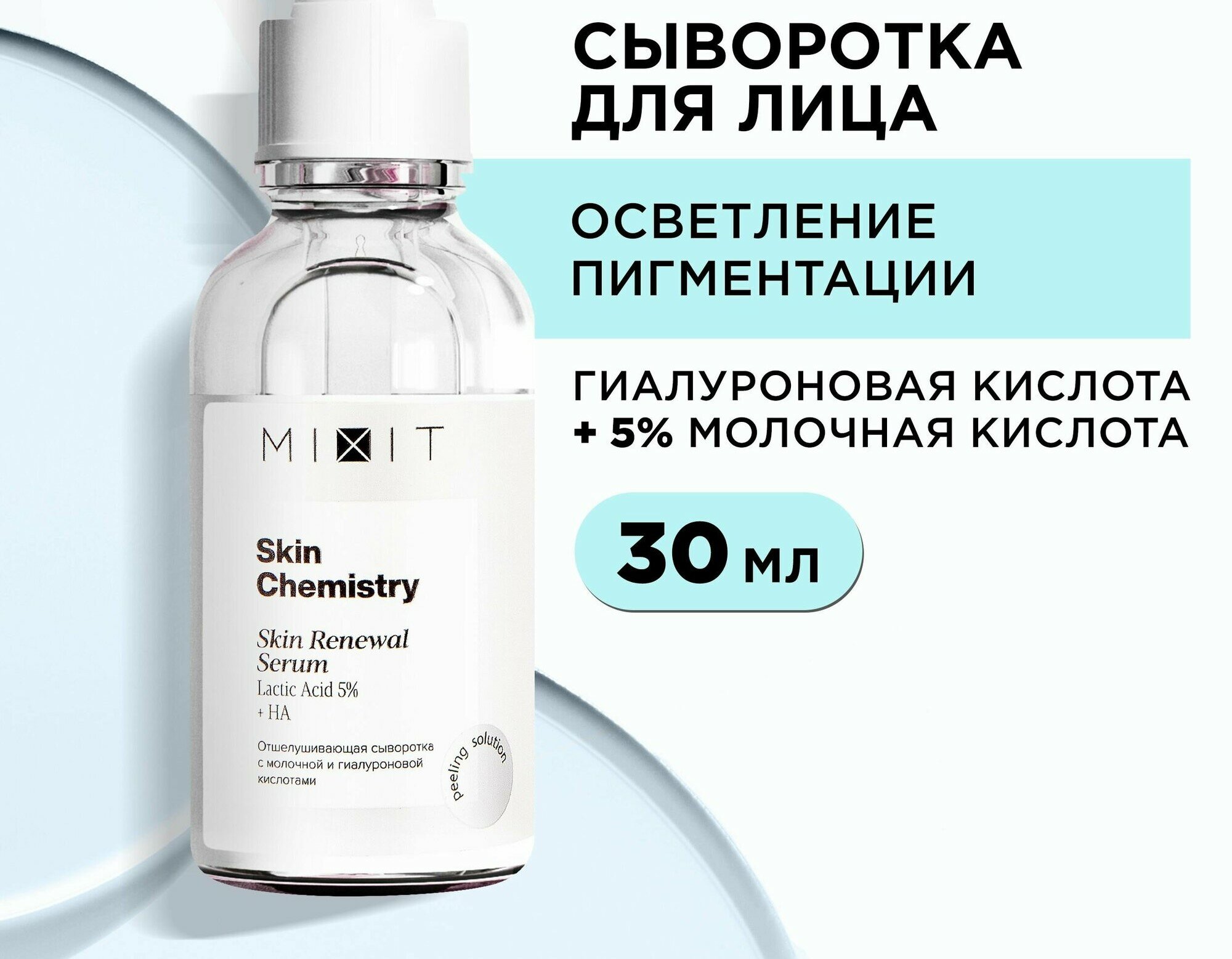 MIXIT Сыворотка для лица MIXIT Skin Chemistry с молочной и гиалуроновой кислотой отшелушивающая, 30 мл