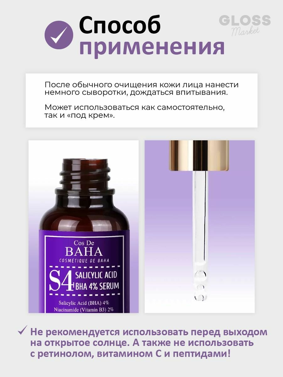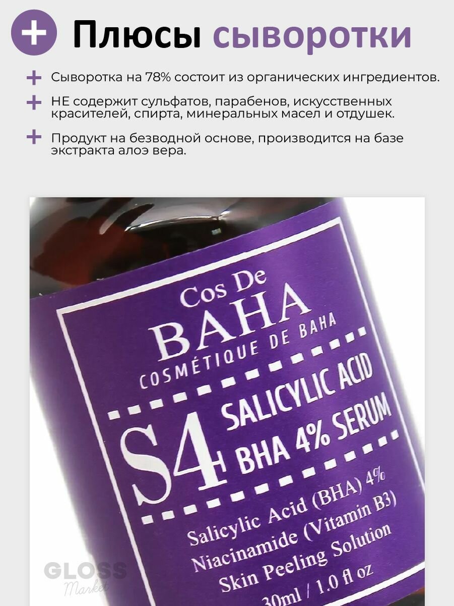 COS DE BAHA Salicylic Acid 4% Serum Сыворотка для жирной кожи лица с салициловой кислотой, 30 мл интересное: