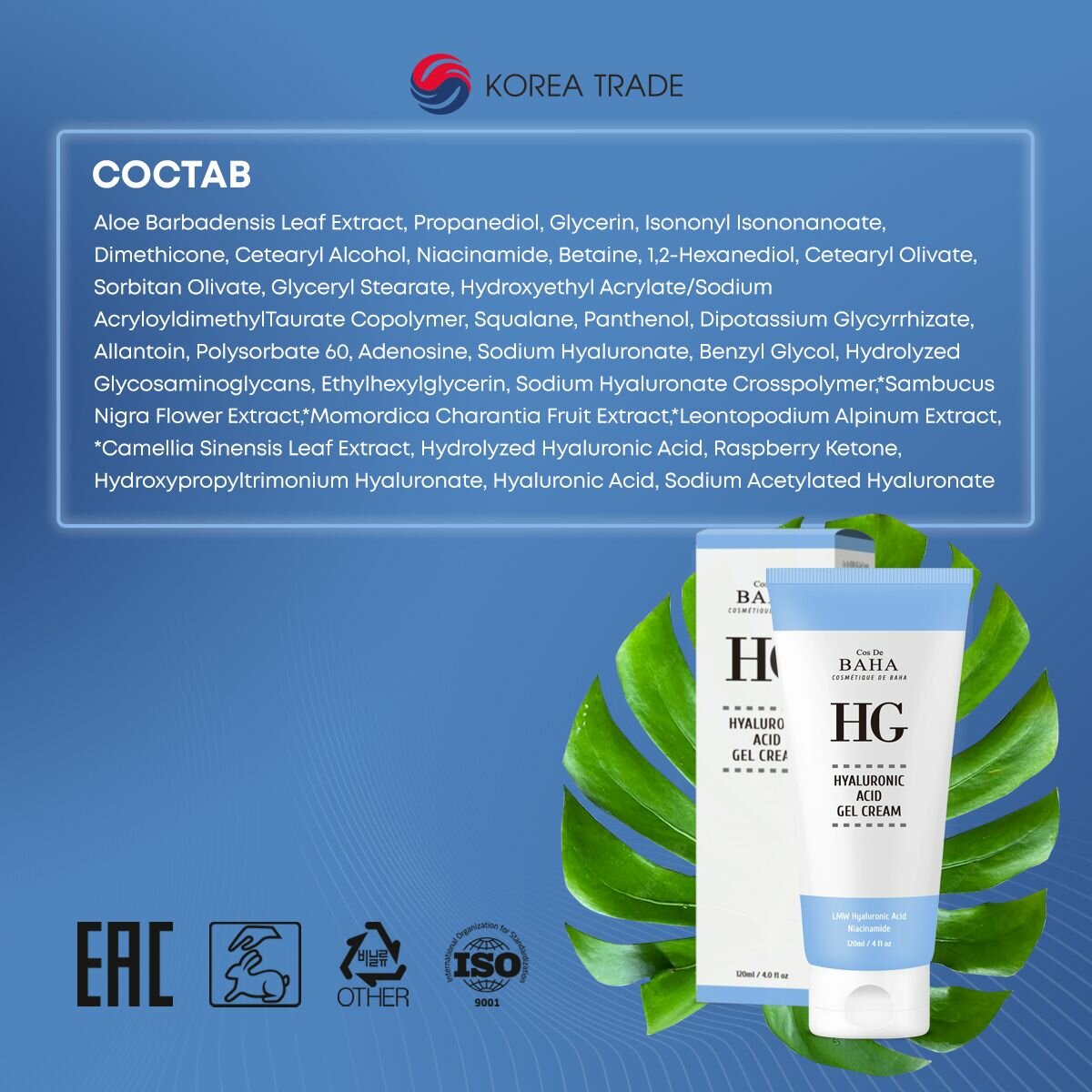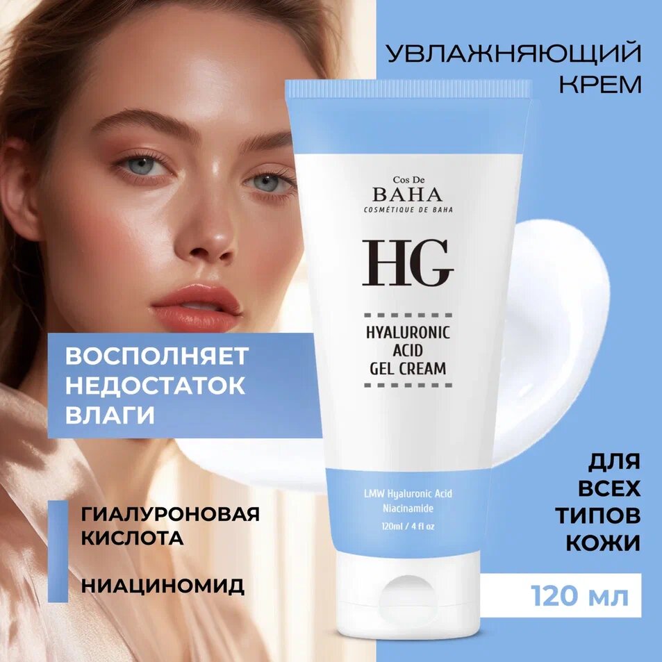 Cos De BAHA Увлажняющий гель-крем для лица с гиалуроновой кислотой и ниацинамидом / Hyaluronic Gel Cream (HG120), 120 мл