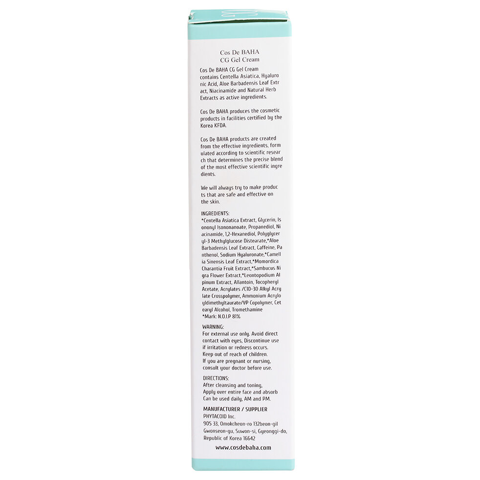 Cos De BAHA Centella Gel Cream (CG) Восстанавливающий гель-крем для лица с экстрактом центеллы азиатской 45мл