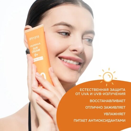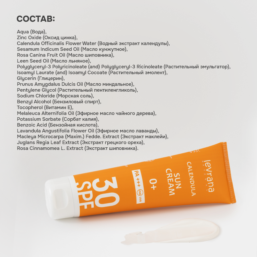 Солнцезащитный крем для лица и тела Календула 30 SPF от бренда Levrana на физических фильтрах, 0+, 100 мл интересное: