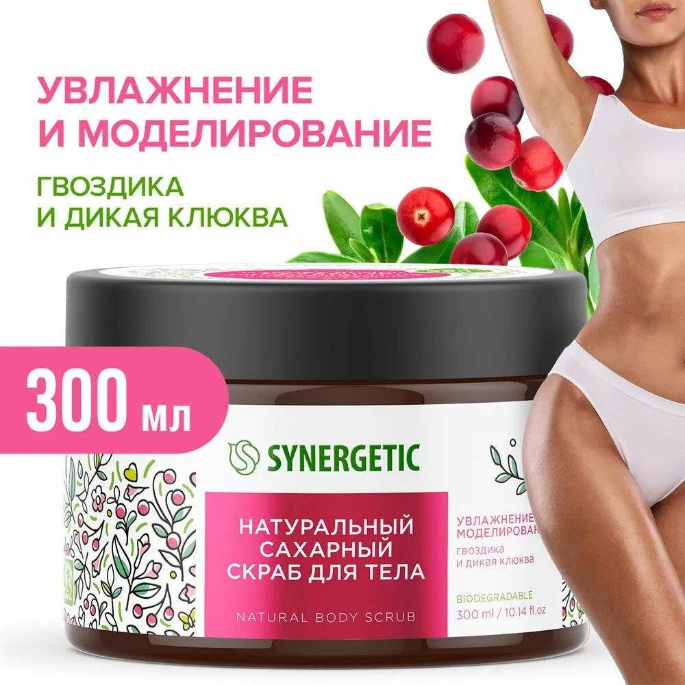 Скраб для тела SYNERGETIC увлажнение и моделирование "Гвоздика и дикая клюква", сахарный, натуральный, 300 мл интересное: