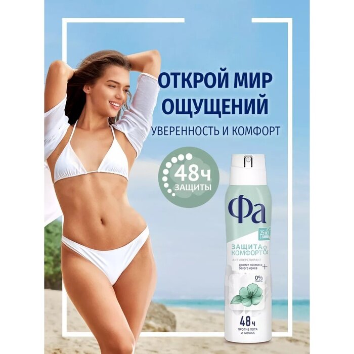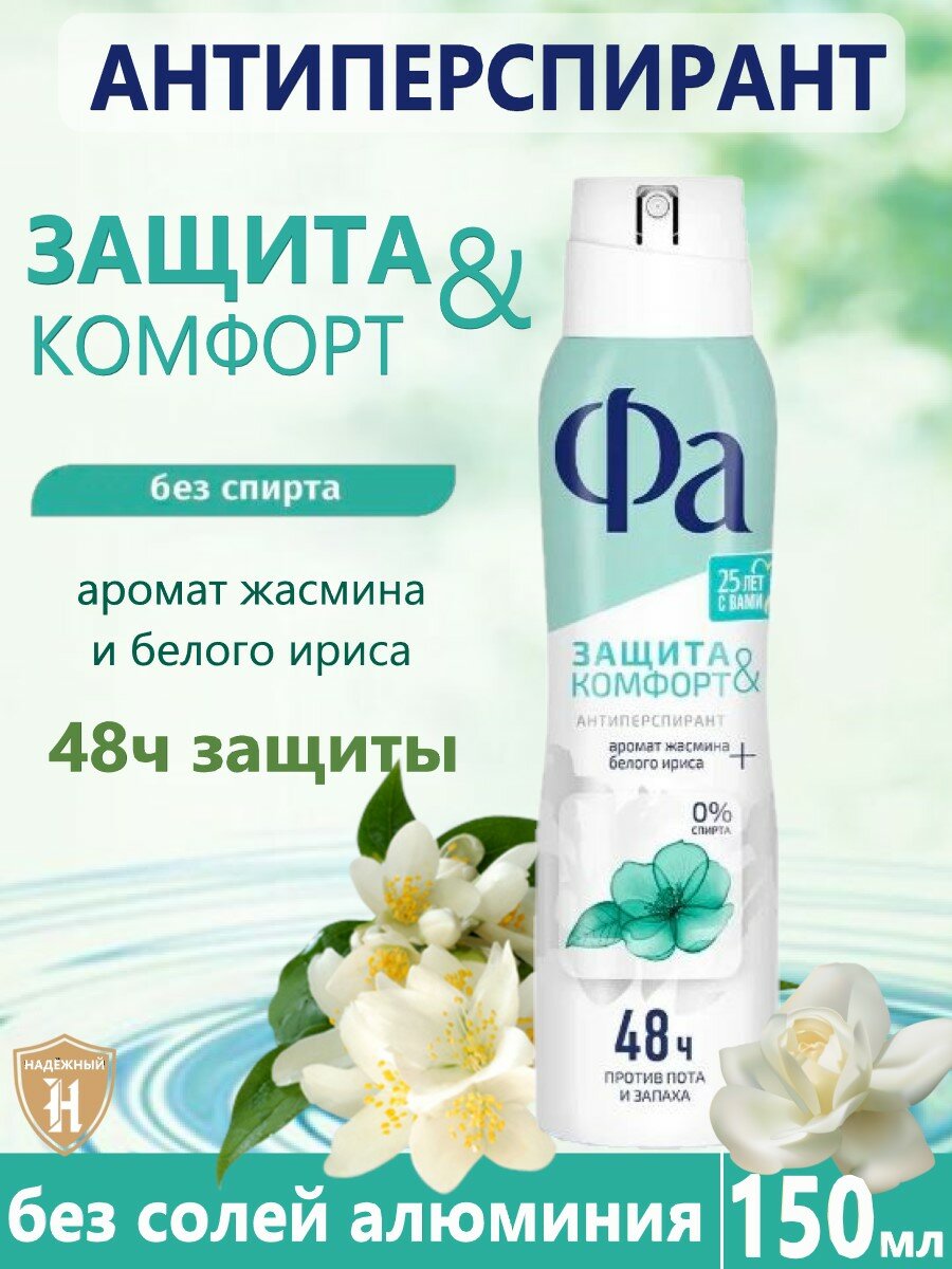 Фа дезодорант-антиперспирант женский спрей для тела Защита & Комфорт Аромат Жасмина, 150 мл