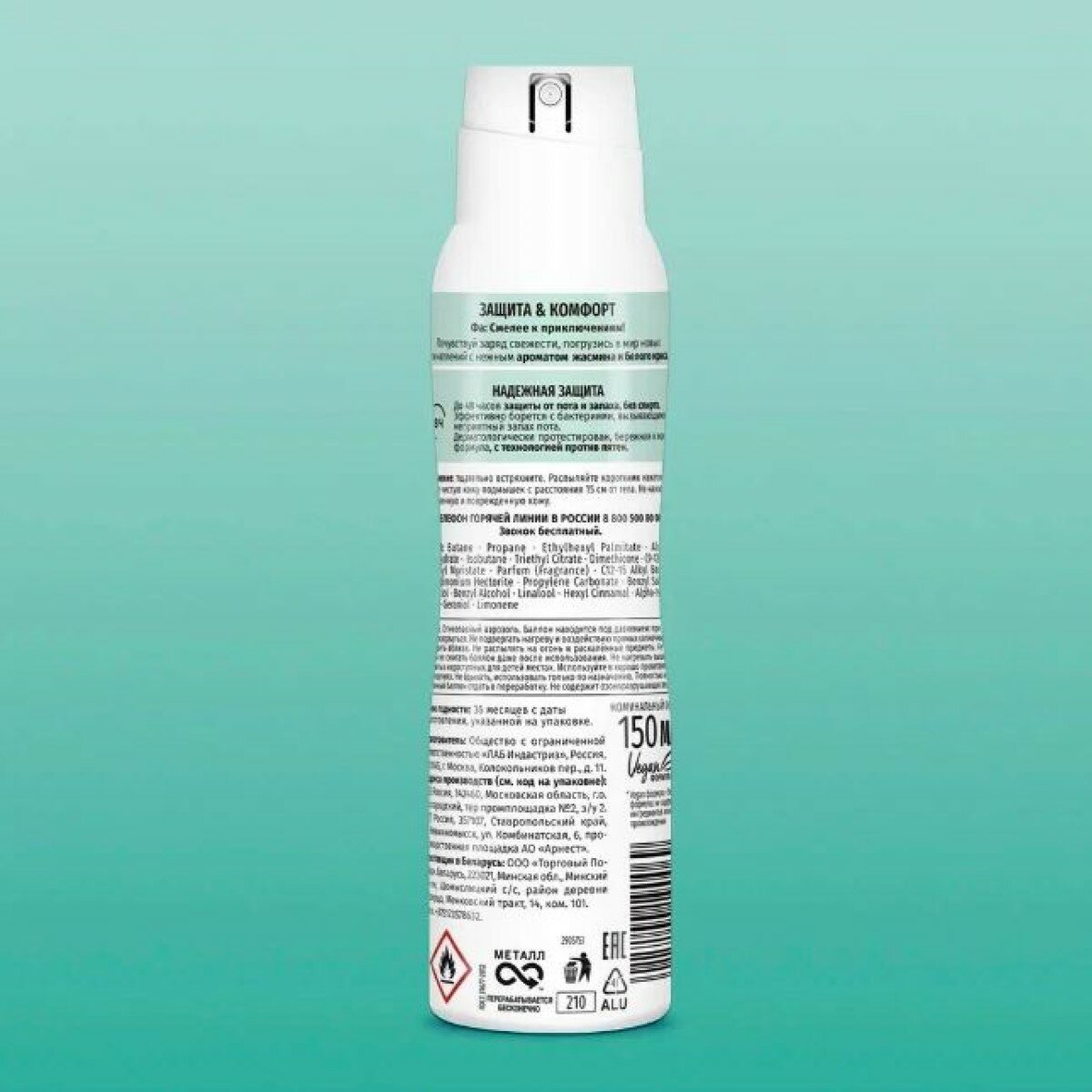| Не содержит | парабены / продукты животного происхождения / соли алюминия / спирт |