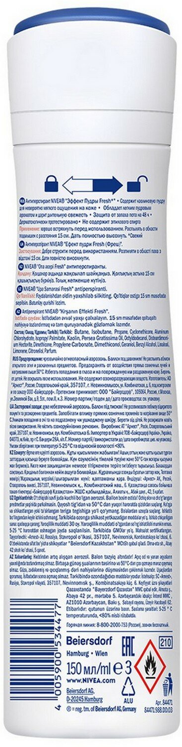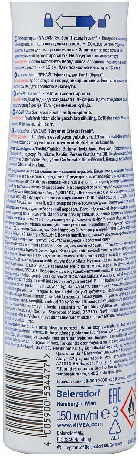 Nivea Дезодорант-антиперспирант спрей женский Эффект пудры Fresh, 150 мл - 1 шт