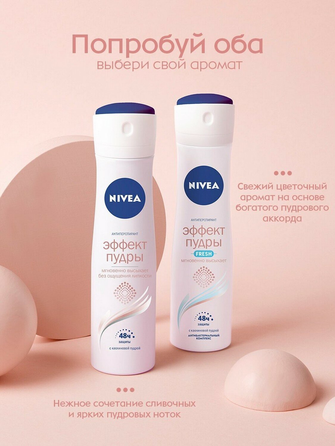 Nivea Дезодорант-спрей женский Эффект пудры,150 мл, 2 шт