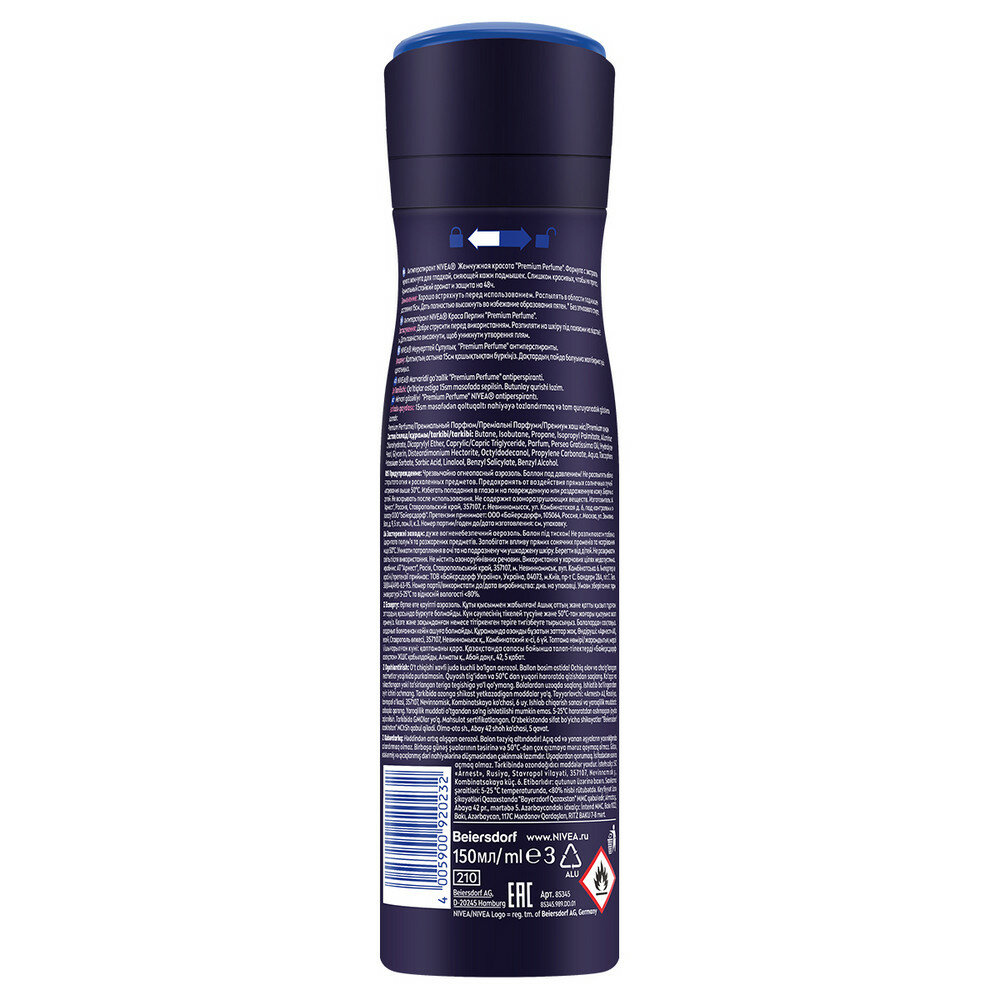 NIVEA Антиперспирант Жемчужная красота Premium Perfume, спрей, аэрозоль, 150 мл, 150 г, 1 шт.
