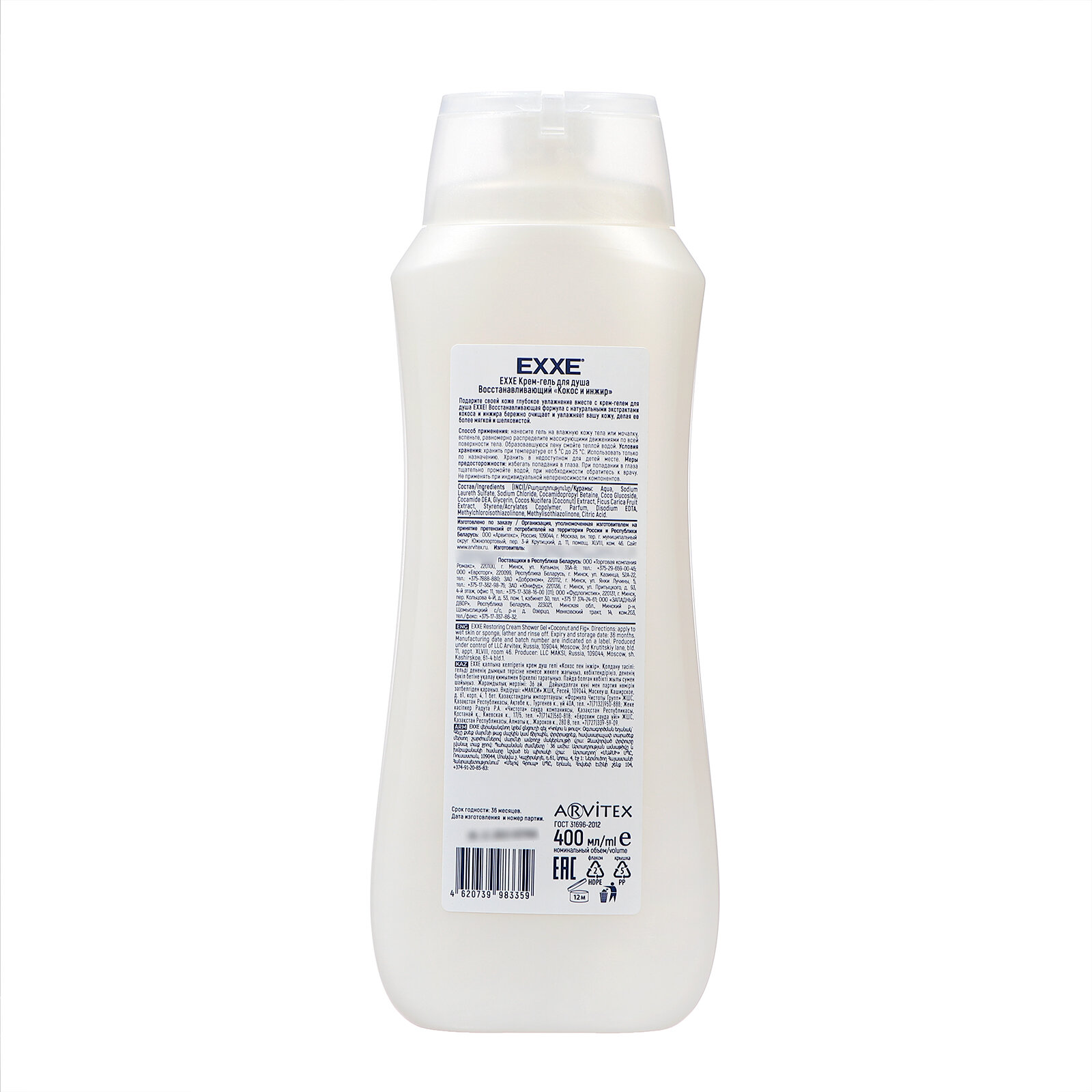 Крем-гель для душа EXXE восстанавливающий, кокос и инжир, 400 мл 10431097