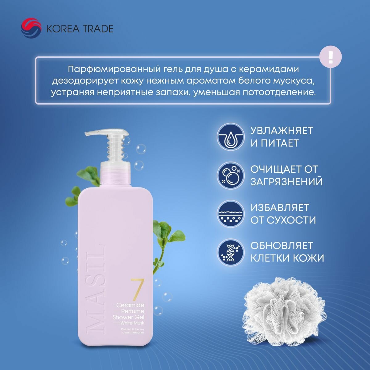 MASIL 7 CERAMIDE PERFUME SHOWER GEL WHITE MUSK Парфюмированный гель для душа с керамидами и ароматом белого мускуса