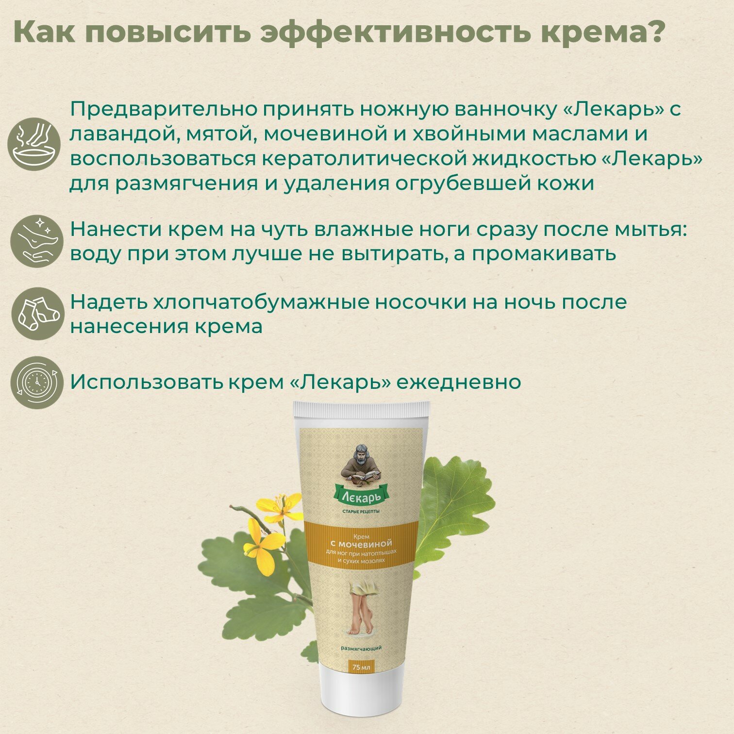 Лекарь, крем с мочевиной при натоптышах и сухих мозолях, 75 мл интересное:
