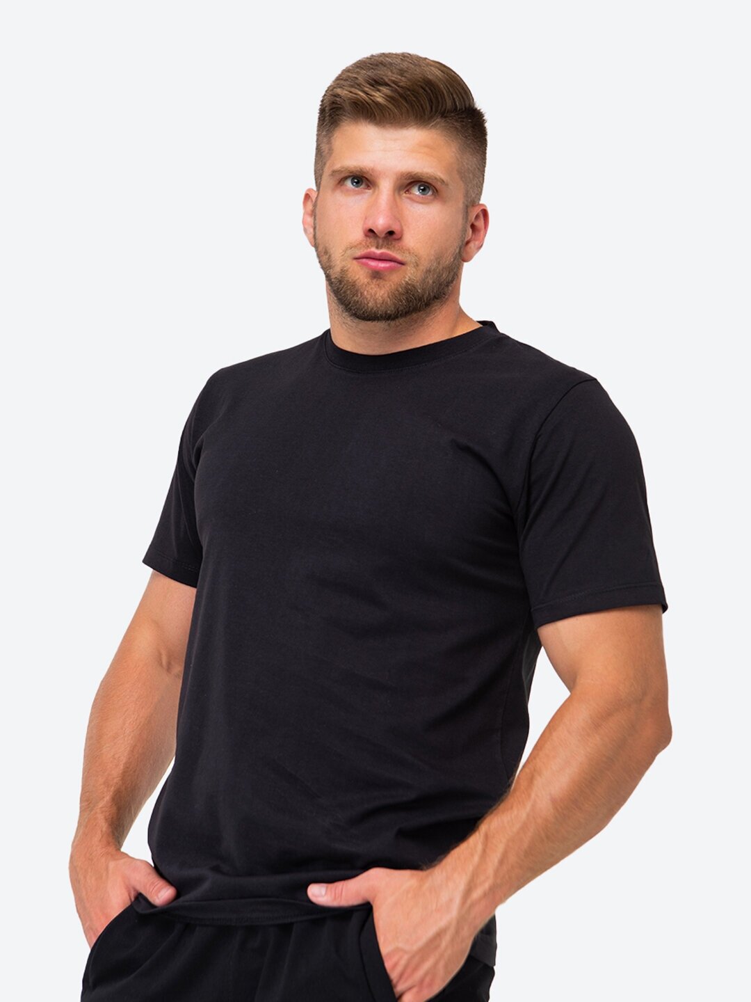 Однотонная футболка мужская черная хлопок базовая для мужчин HF9113 черный 46