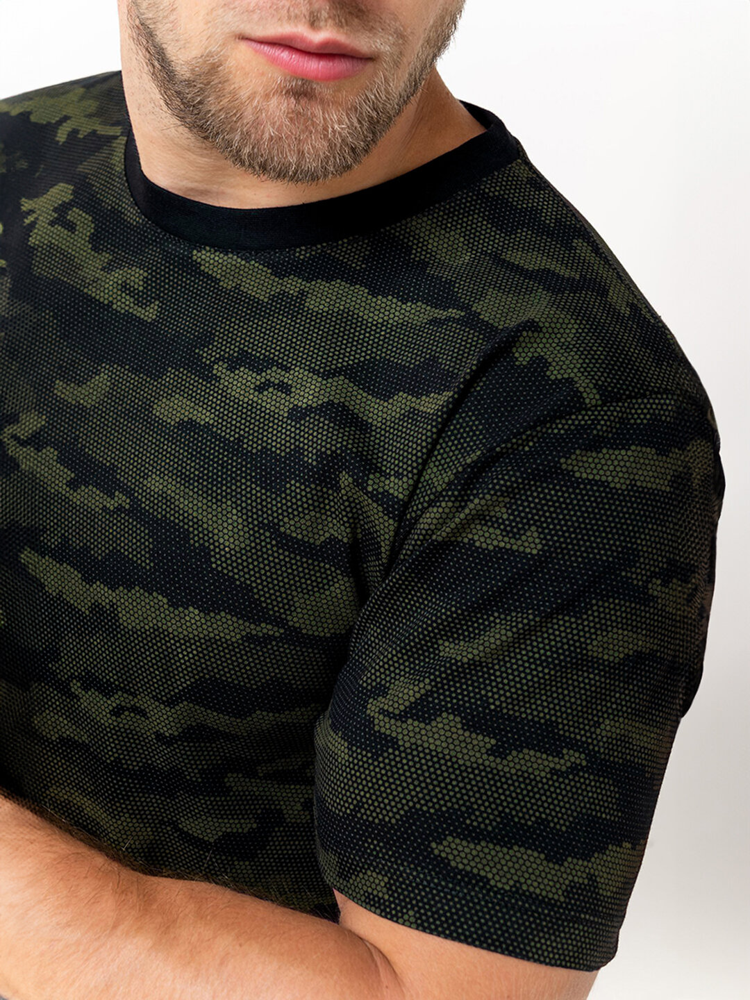 Футболка мужская камуфляжная защитная хлопок HF9113 соты.т.зеленый 48