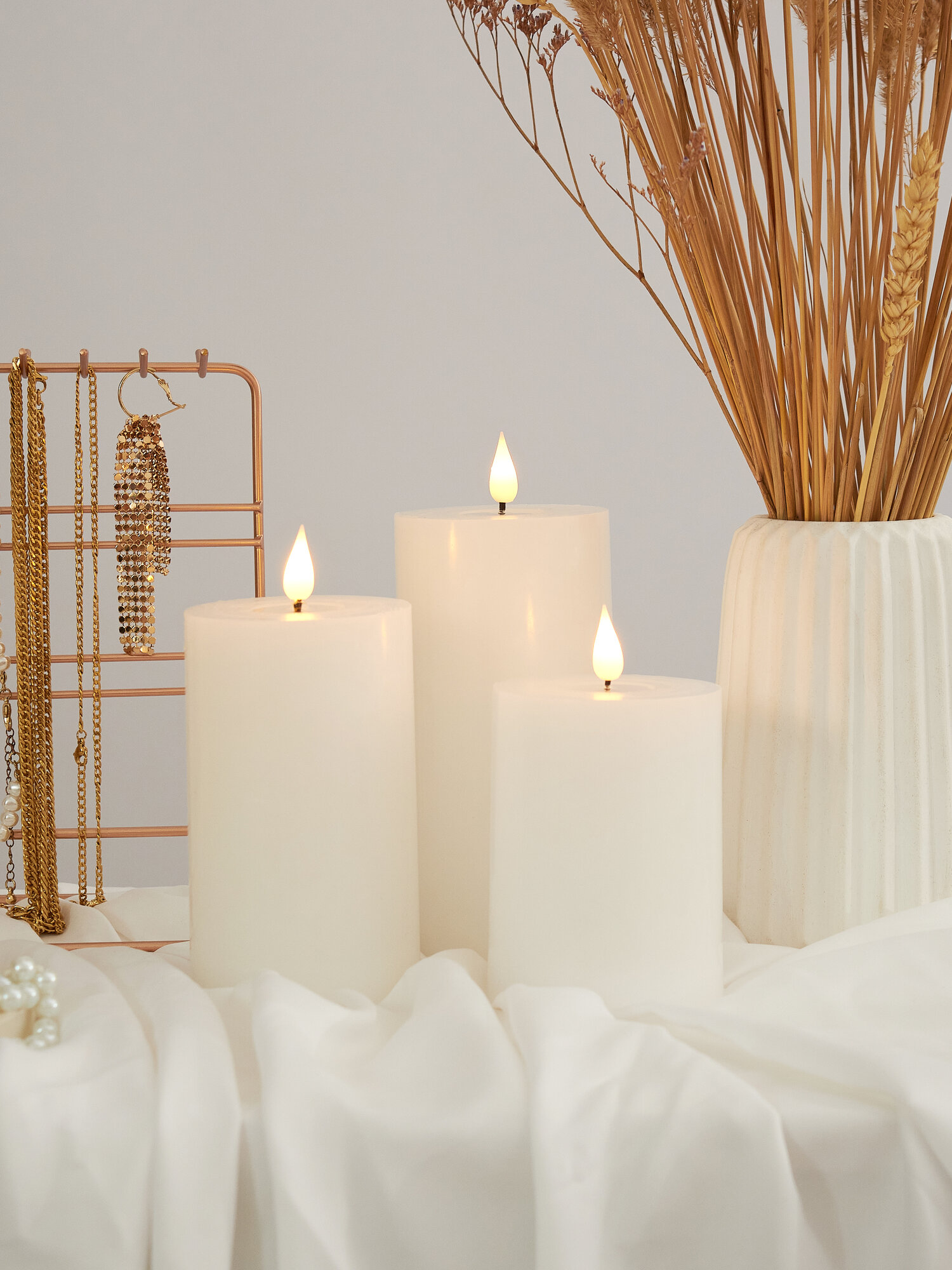Мерцающие светодиодные свечи на батарейках - 3 штуки, золотые